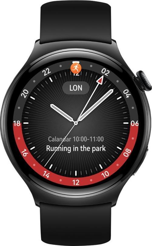 Huawei Watch 4 - Edelstahl - intelligente Uhr mit Riemen - Flouroelastomer - schwarz - Handgelenkgröße: 140-210 mm - Anzeige 3,8 cm (1,5") - 32GB - Wi-Fi, LTE, NFC, Bluetooth - 4G - 48 g - Schwarz (55020AMN) (geöffnet)