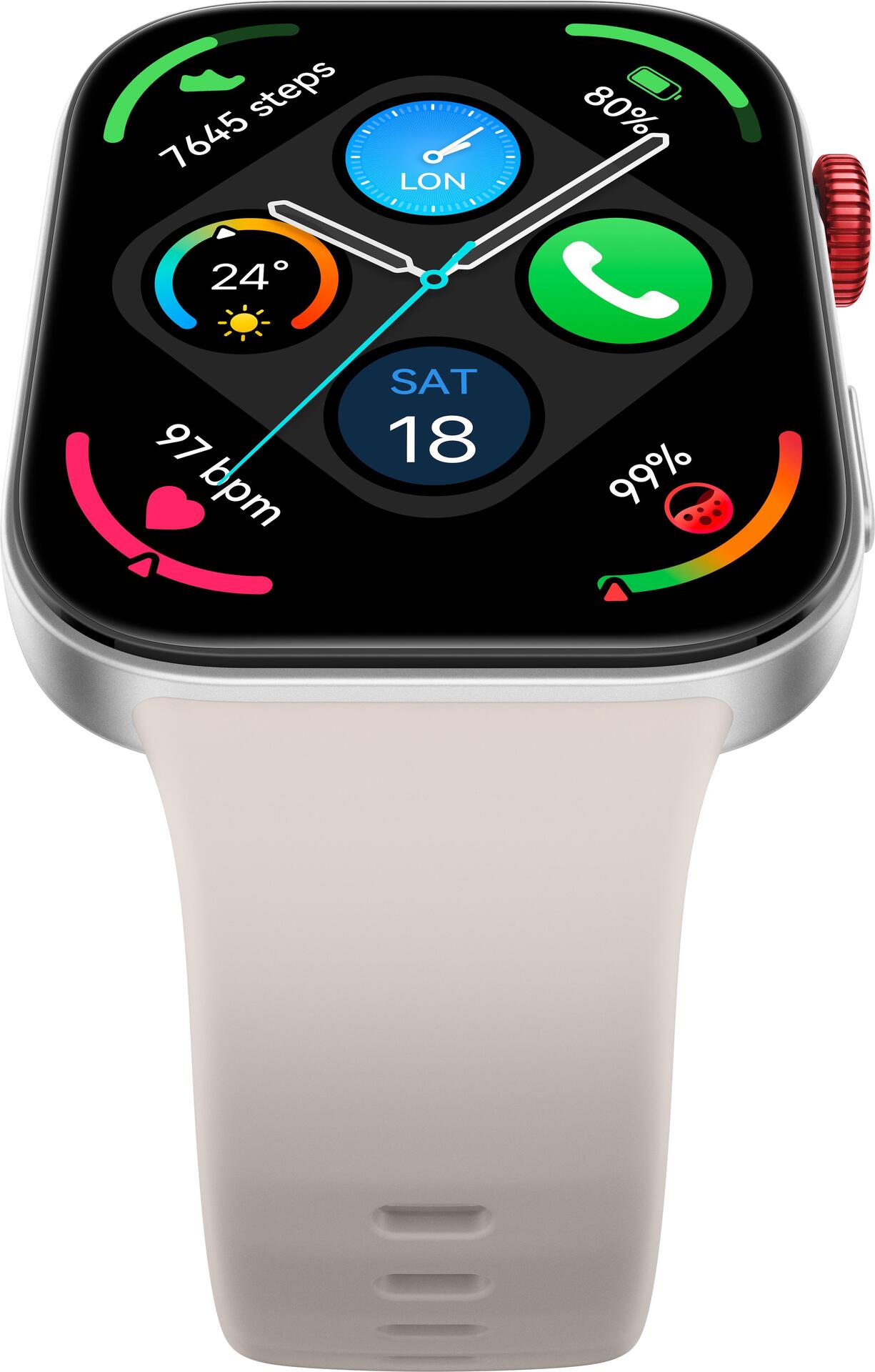 | Funktionen | Kamerafernbedienung, Helligkeit: 1500 nits, anpassbare Ziffernblätter, Anruferkennung, Erinnerungen, Steuerung der Musikwiedergabe, animierte Workouts, Wetterinformationen |