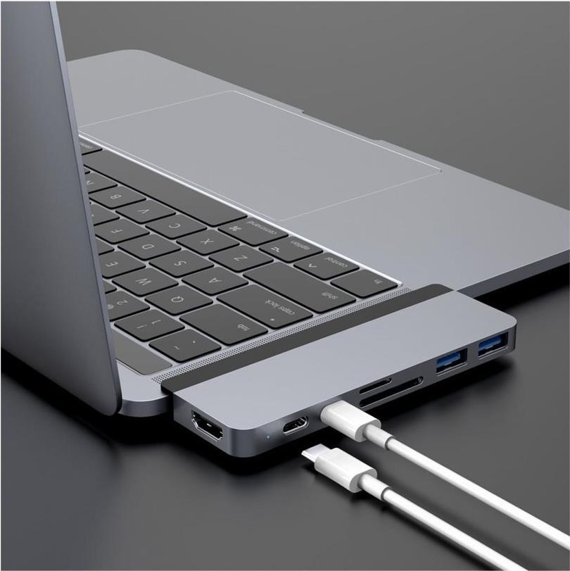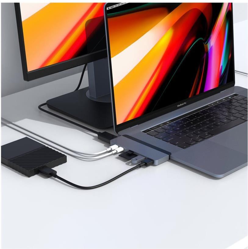 Formschlüssiger USB-C-Hub mit 4K 60 Hz HDMI und magnetischem Griff für MacBook Pro und MacBook Air. Diese USB-C-Dockingstation lässt sich sicher am MacBook befestigen und bietet 7 Anschlüsse: 4K 60 Hz HDMI-Ausgang, USB-C PD, Thunderbolt 3 kompatibel und mehr.