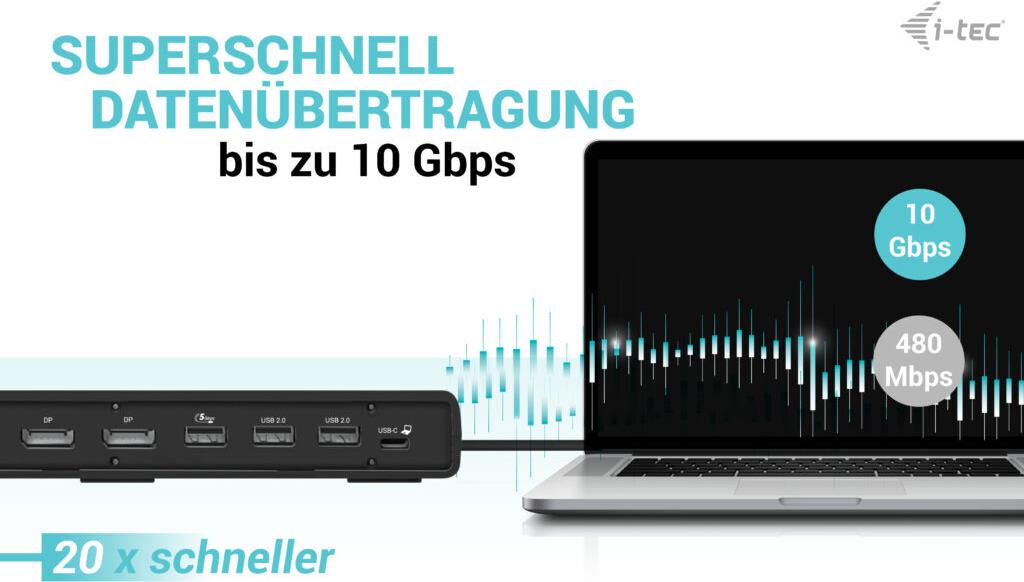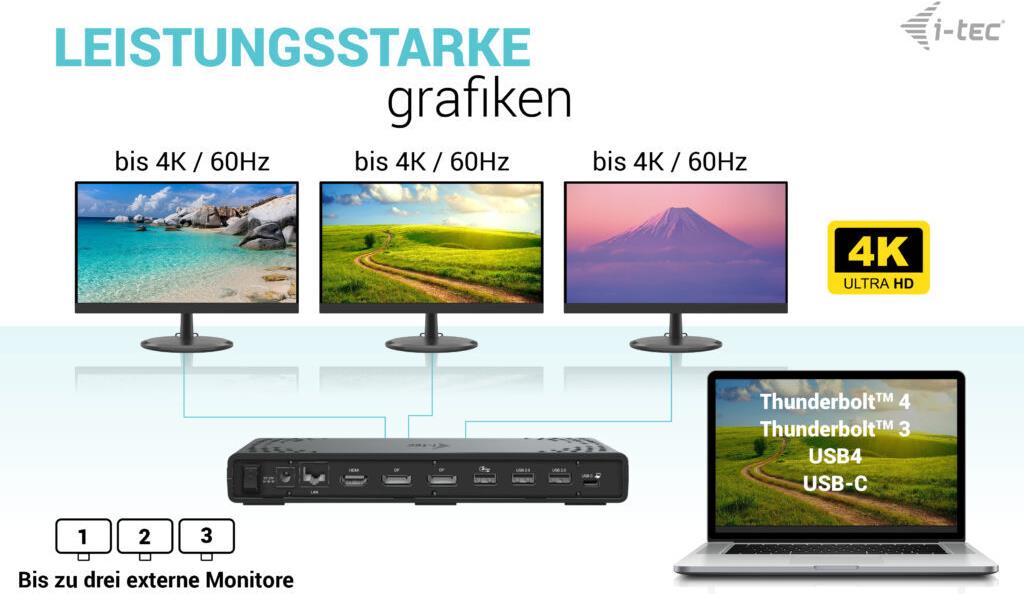 | Produktbeschreibung | i-Tec - Dockingstation - USB-C / USB4 / Thunderbolt 3 / Thunderbolt 4 - HDMI, 2 x DP++ - 1GbE |