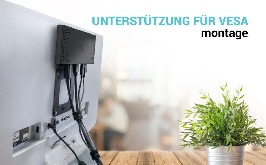 Zahlreiche USB-Anschlüsse (einschließlich derjenigen, die Gen 2-Geschwindigkeiten von bis zu 10 Gb/s unterstützen), eine zuverlässige und schnelle Verbindung zum Unternehmensnetzwerk dank des integrierten LAN-Anschlusses und die Unterstützung für die Installation hinter dem Monitor machen diese Dockingstation zum idealen Begleiter für echte Profis. Natürlich unterstützt sie das Aufladen Ihres Laptops oder Tablets mit bis zu 100 W.