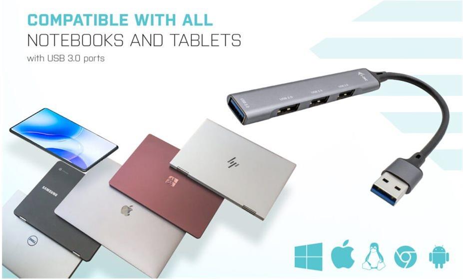 I-TEC USB 3.0 Metal HUB 1x USB 3.0 3x USB 2.0 ohne Netzteil (U3HUBMETALMINI4)