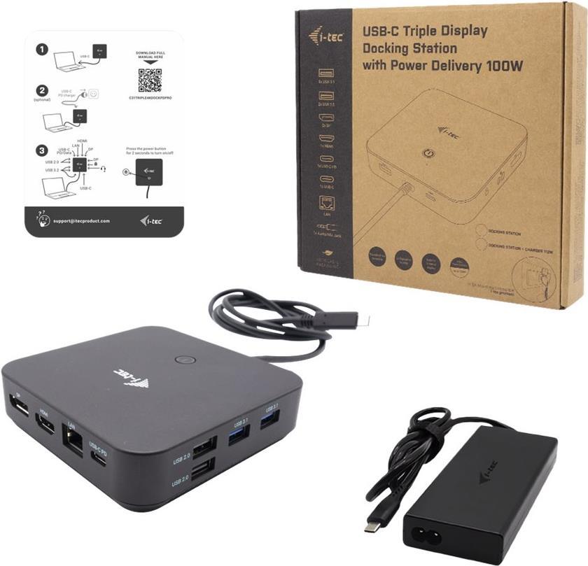 Ein leistungsstarkes USB-C-Büro-Dock, das bis zu drei externe 4K-Monitore unterstützt. Das Dock ist mit jedem Laptop kompatibel, der mit einem USB-C-, USB4- oder Thunderbolt 3/4-Anschluss ausgestattet ist. Natürlich unterstützt es das Aufladen Ihres Laptops oder Tablets mit bis zu 100 W. Das integrierte DP 1.4 DSC-Protokoll unterstützt auch eine Auflösung von 5K/60 Hz, was von professionellen Grafikdesignern, Datenanalysten, Filmeditoren oder Liebhabern hochauflösender Videos geschätzt wird.