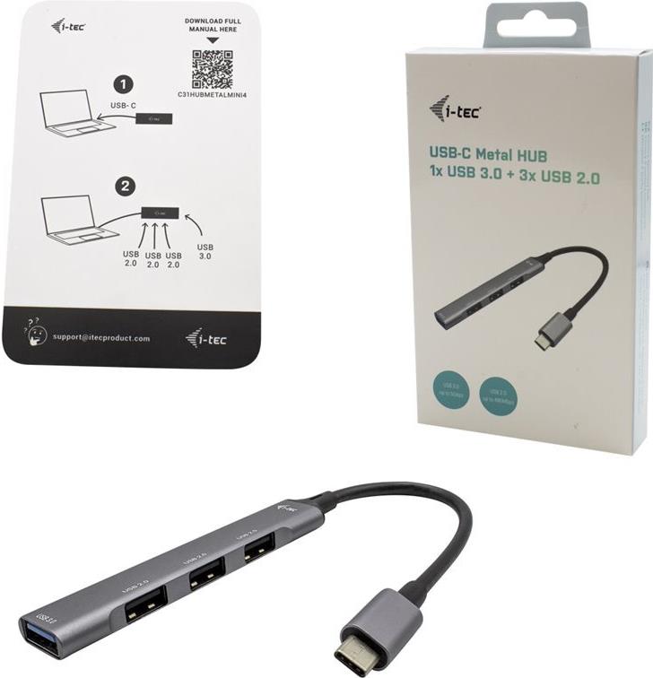 Mit diesem Hub erhalten Sie 4 zusätzliche USB-Anschlüsse: einen Standard-USB-3.0- und drei USB-2.0-Anschlüsse. Schließen Sie eine externe Tastatur und Maus an, übertragen Sie Daten oder Filme von einem USB-Flash-Laufwerk mit einer Geschwindigkeit von bis zu 5 Gbit/s, oder laden Sie Ihre mobilen Geräte auf (Standard-USB-Geschwindigkeit 0,9 A).