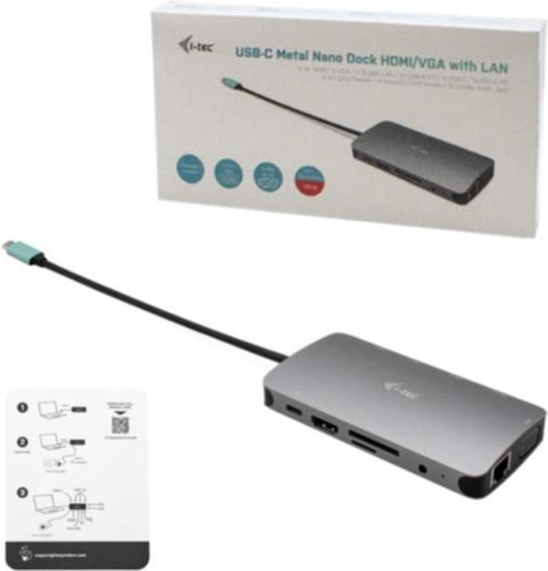 I-TEC USB-C Metal Nano Dock 1xHDMI 1xVGA 1xSD Kartenleser 1xmicroSD Kartenleser 1xGLAN 1xAudio/Mic 3xUSB 3.1 1xUSB-C Data 1xUSB-C PD (C31NANODOCKVGAPD)