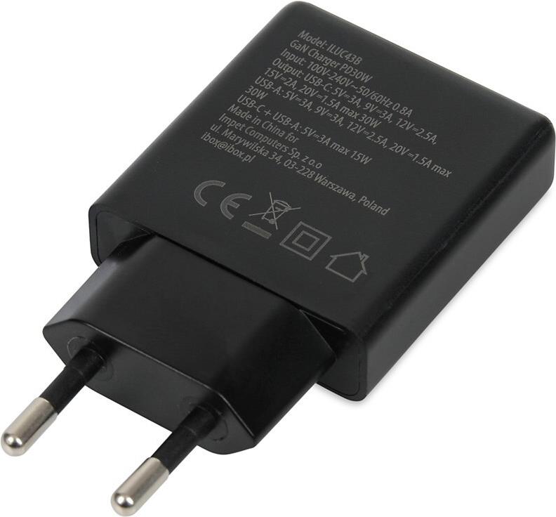 iBOX C-43 Slim GaN PD30W Netzladegerät, schwarz (ILUC43B)