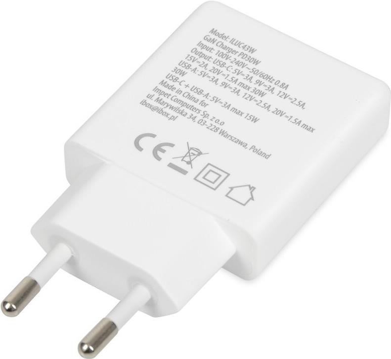 iBOX C-43 Slim GaN PD30W Netzladegerät, weiß (ILUC43W)