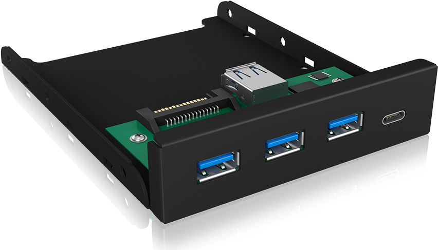 Neu gekauft oder auch lange genutzt - aber was ist das für ein Schacht im Gehäuse? Der 3,5" (Floppy-) Schacht in der Front der meisten Gehäuse wurde früher häufig genutzt, findet nun aber kaum noch eine Bedeutung. Der IB-HUB1418-i3 liefert drei USB Type-C und einen Type-A Anschlüsse, um den ungenutzten Platz mit aktuellen Anschlüssen auszufüllen.
