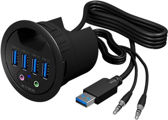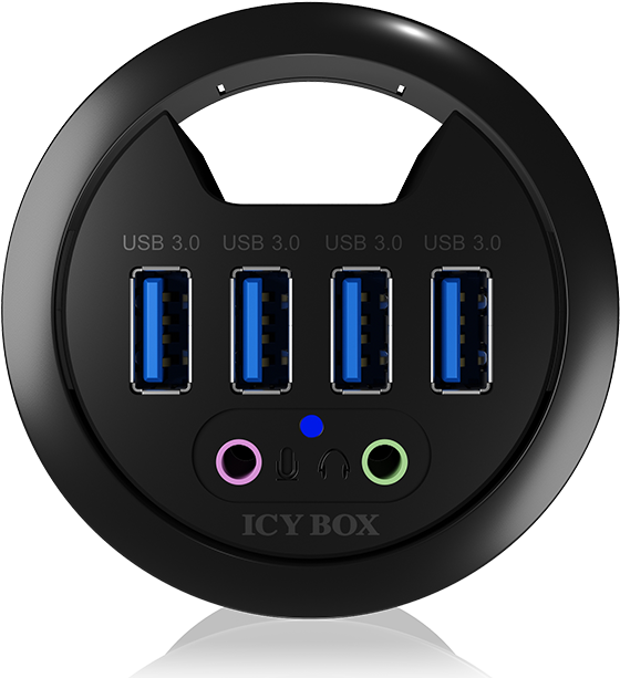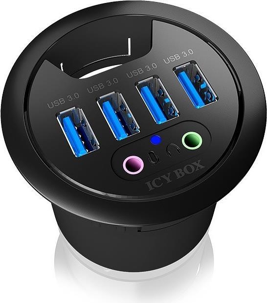 ICY BOX IB-Hub1403a Tisch-Hub mit 4x USB 3.0 mit bis zu 5 Gbit/s und Audio Ein-/Ausgang Kabeldurchfuehrung fuer 60 cm (60303)