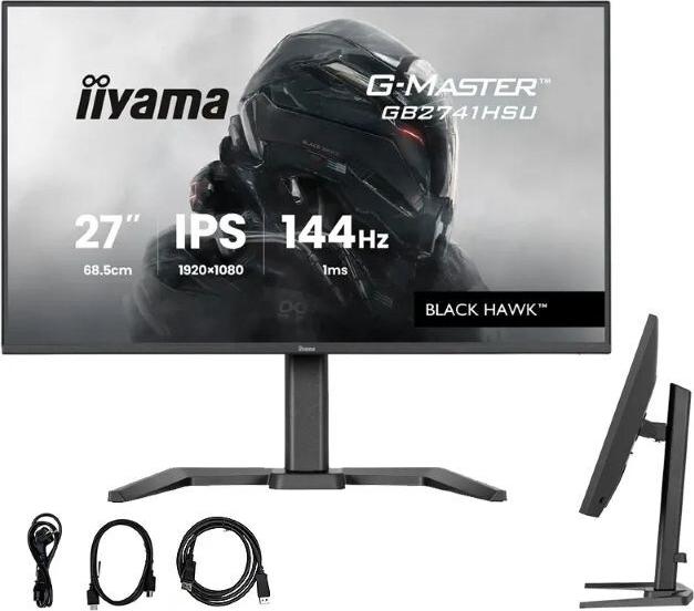 Der iiyama G-Master GB2741HSU-B1 Black Hawk bietet Gamern genau das, was sie benötigen: Das 68,6 cm (27\") große IPS-Panel überzeugt durch besonders konsistente Farben und große Betrachtungswinkel. Mit der FullHD-Auflösung (1920 x 1080 Pixel) werden Inhalte brillant scharf dargestellt, um Spiele, aber auch Filme und Serien oder auch Textinhalte optimal zu erkennen. Um Spielern maximale Vorteile zu bieten, ist der G-Master GB2741HSU-B1 mit einer Bildwiederholrate von 144 Hz sowie einer niedrigen Reaktionszeit von 1 ms (MPRT) ausgestattet. Mit Unterstützung der Free-Sync-Technologie und der Black-Tuner-Funktion erlebt man ein flüssiges Spielerlebnis ohne lästige Ruckler und Lags, dafür mit einem kristallklaren Bild selbst in den dunkelsten Szenen. Der ergonomische Standfuß mit Höhenverstellung sorgt zusammen mit der Flicker-Free-Technologie und der Blaulicht-Reduktion für ein ermüdungsfreies, angenehmes Gaming-Erlebnis.Hauptmerkmale