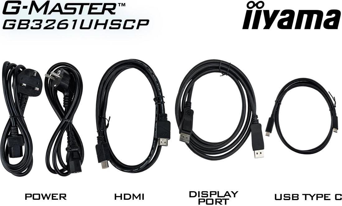 | Kabel | Netzkabel (1,85m), HDMI-Kabel (1,85m), DisplayPort-Kabel (1,85m), USB-Kabel |