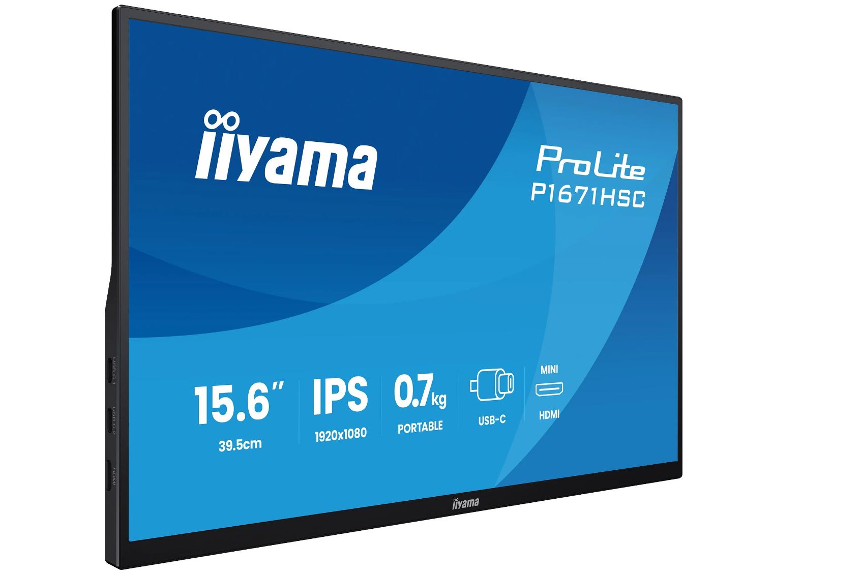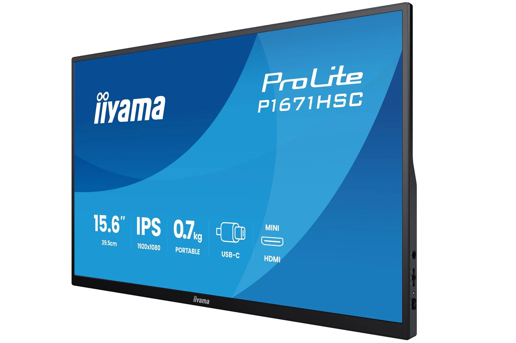 • iiyama P1671HSC-B1, LED-Monitor - (39.5 cm (15.6 Zoll), schwarz (matt), Portabler Monitor mit USB-C-Dock, Lautsprechern und Lederhülle) [Energieklasse D] (P1671HSC-B1)