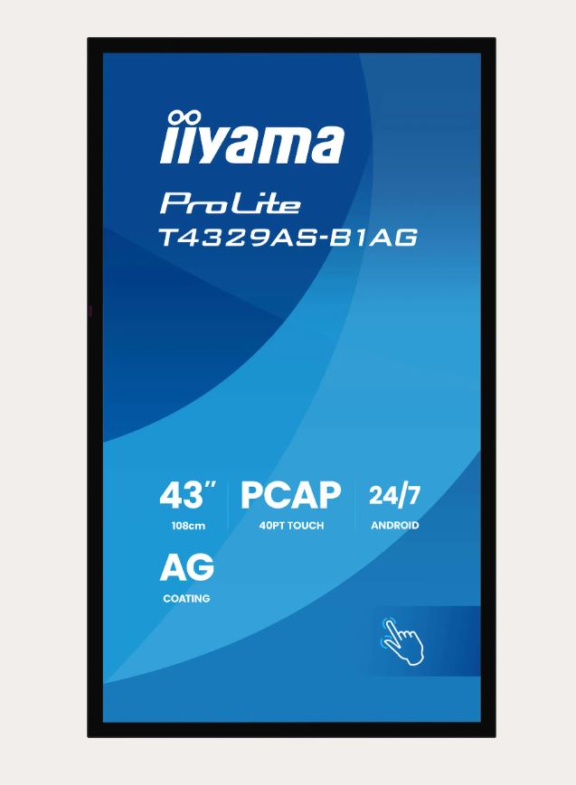 iiyama ProLite T4329AS-B1AG - 109 cm (43") Diagonalklasse (108 cm (42.5") sichtbar) LCD-Display mit LED-Hintergrundbeleuchtung - Digital Signage - mit Touchscreen (Multi-Touch) - 4K UHD (2160p) 3840 x 2160 - Direct LED - schwarz (Blende), matte Oberfläche [Energieklasse G] (T4329AS-B1AG)