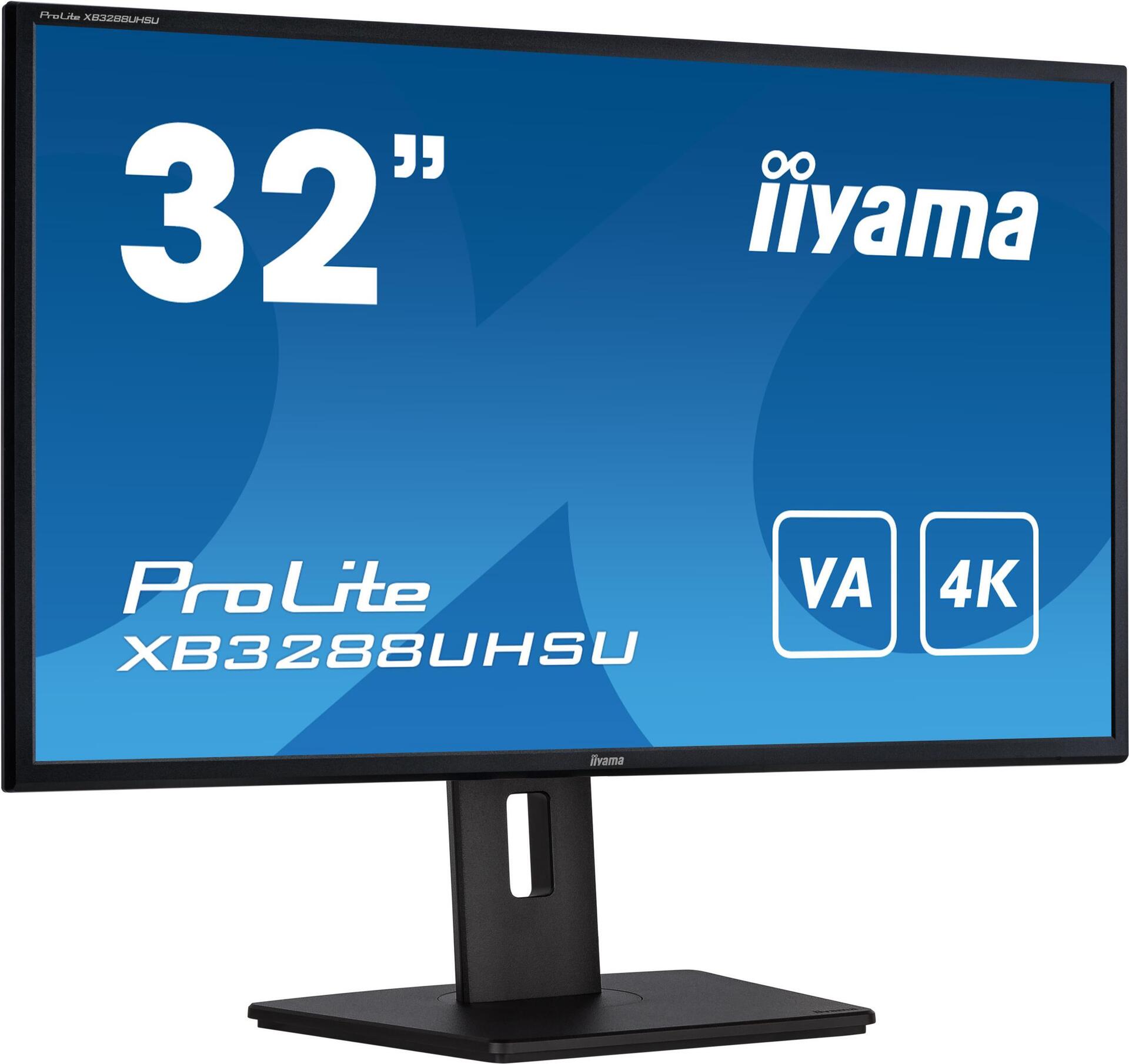 iiyama ProLite XB3288UHSU-B5, 80cm (31.5"), 4K, USB, Kit (USB), schwarz TFT Monitor, 16:9, 80 cm (31.5"), Auflösung: 3840x2160 Pixel, VESA Mount (100x100 mm), Lautsprecher, Reaktionszeit: 3ms, Helligkeit 300cd, Blickwinkel 178/178°(H/V), Kontrast: 3000:1, USB (2x), Audio, Display-Port, HDMI, inkl.: Kabel (USB, HDMI, Display Port), Netzkabel, QSG, schwarz (XB3288UHSU-B5)