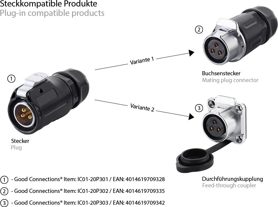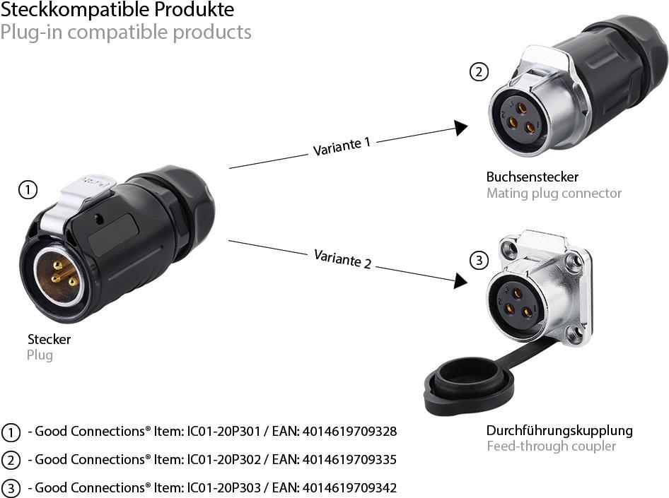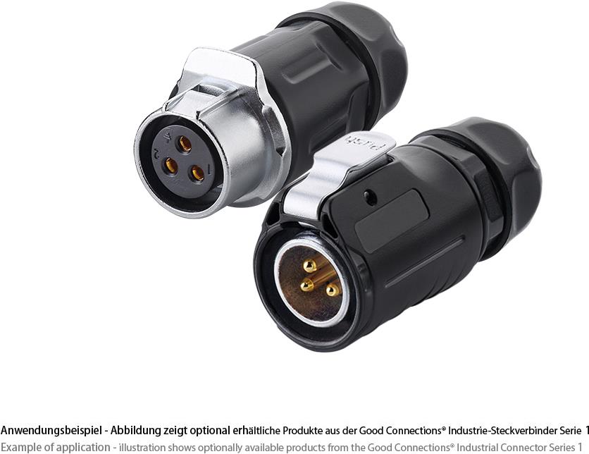Industrie-Steckverbinder S1 - Power (3-Pin) Stecker mit Klick-Arretierung, Lötanschluss, M20, IP65/6 (IC01-20P301)