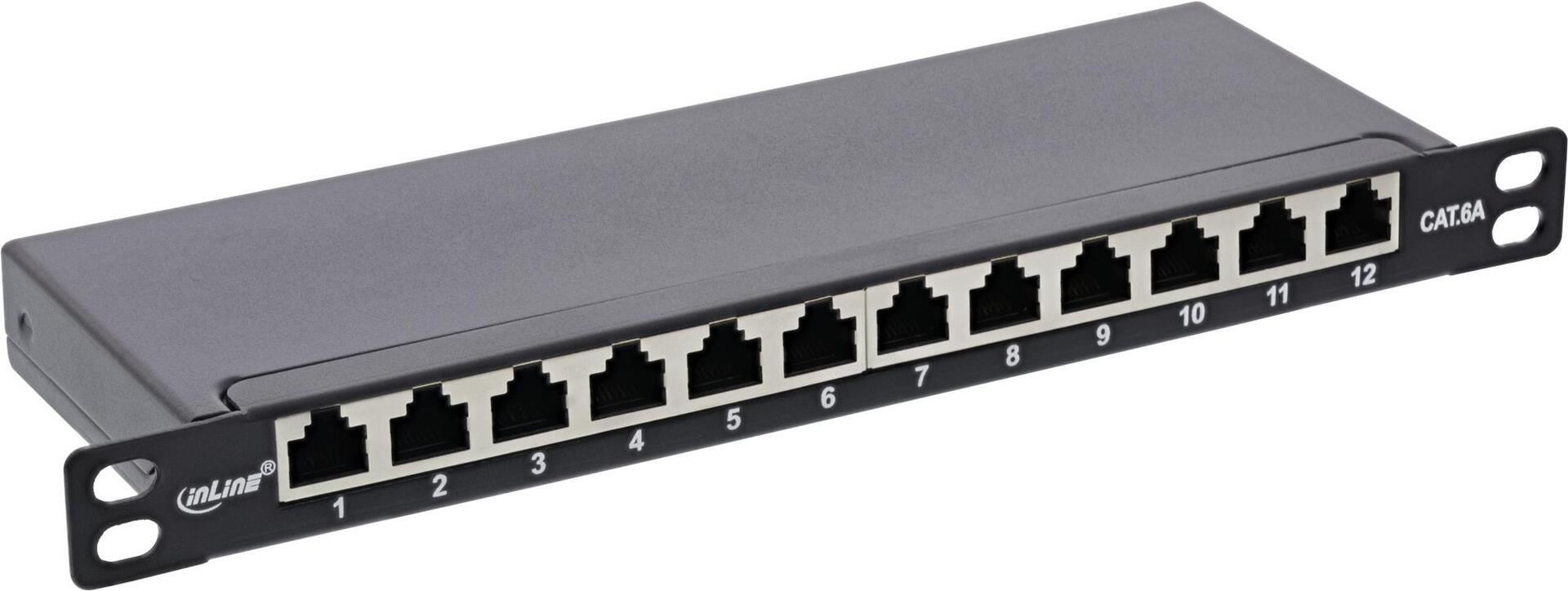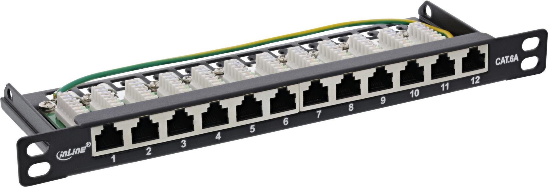 InLine® 25,40cm (10") Patchfeld Cat.6A 0,5HE 12-fach, schwarz, RAL9005 (76819S)