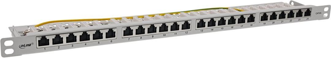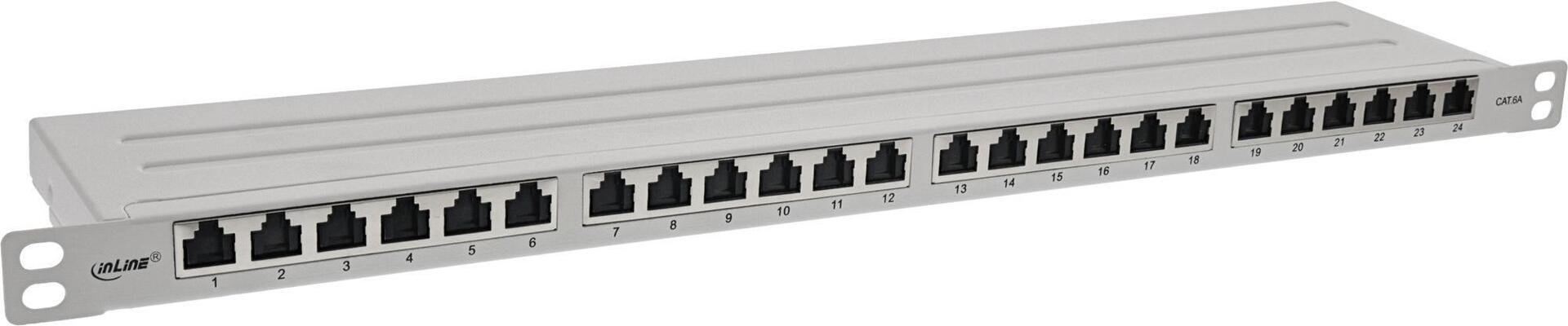 InLine® 48,30cm (19") Patchfeld Cat.6A 0,5 HE 24-fach, mit Staubschutz, grau (76824L)