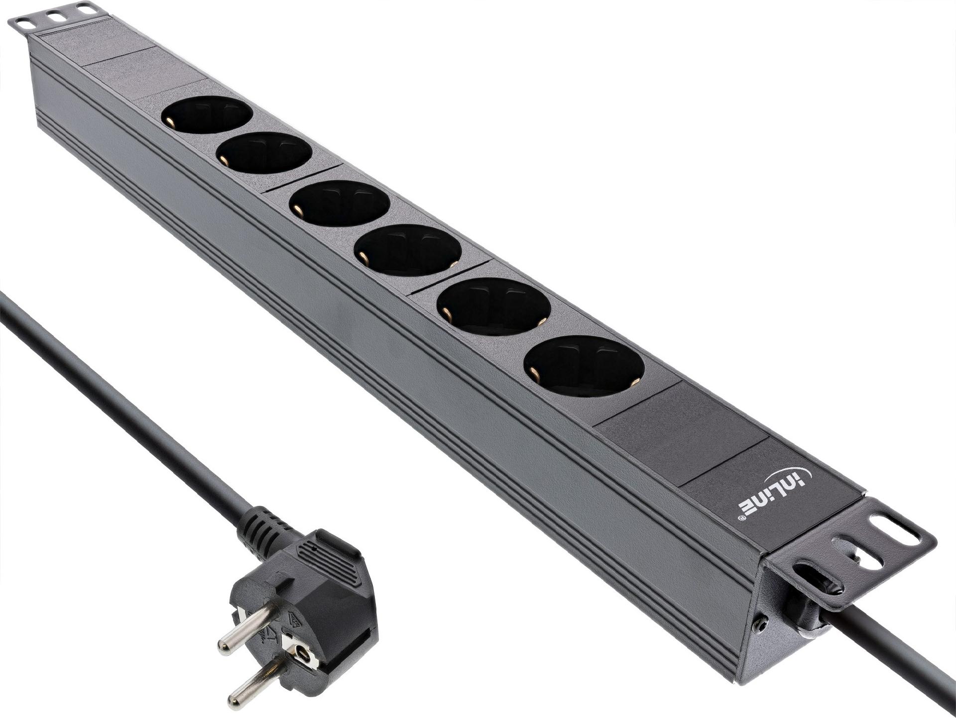 Steckdosenleiste mit 6 Steckdosen zum Einbau in den 19" Netzwerkschrank• 6-fach Steckdosenleiste ohne Schalter