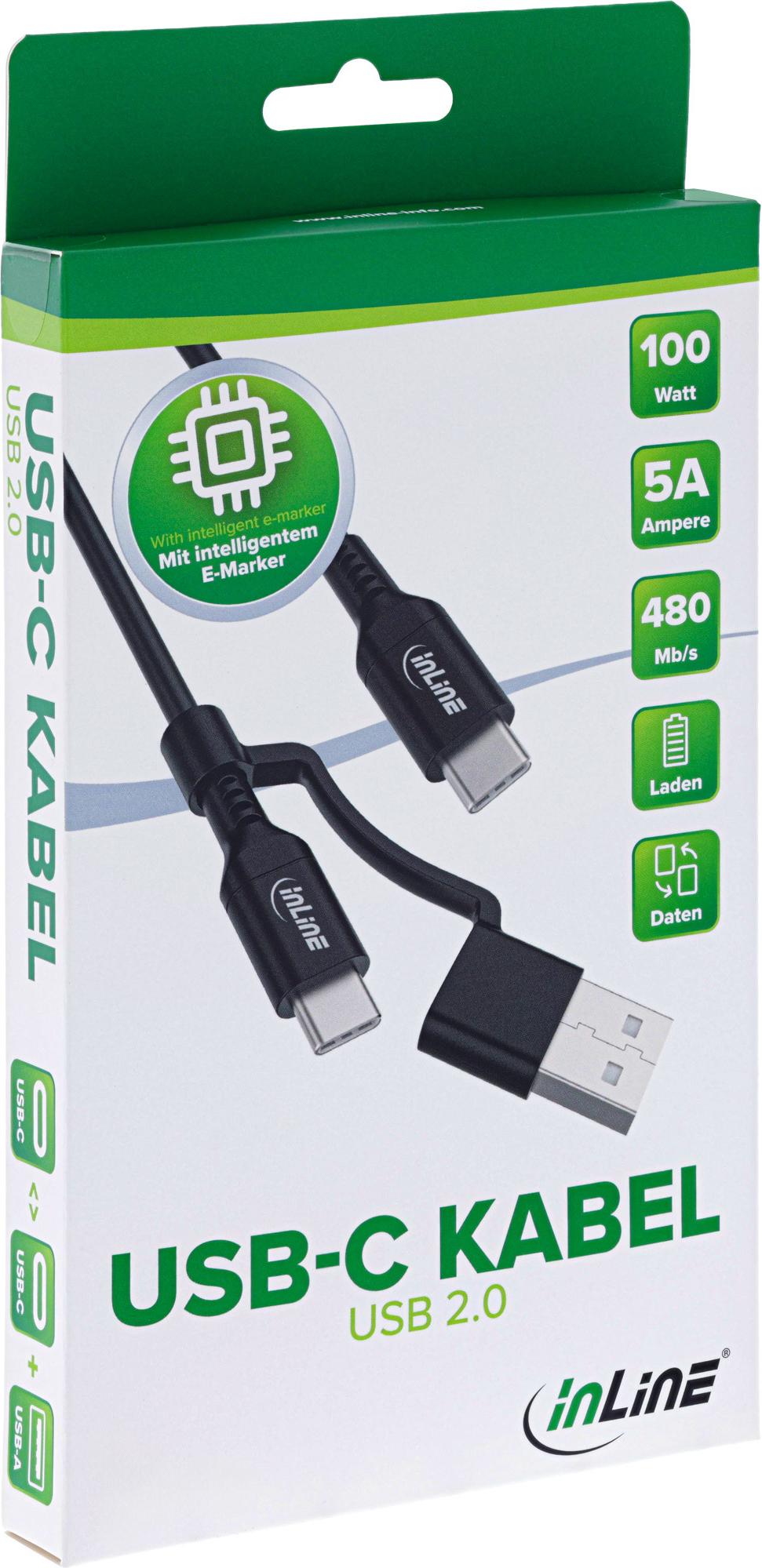 • InLine 2-in-1 USB-C Kabel+ USB-A Adapter USB 2.0 100W TPE schwarz 2m (31412B)