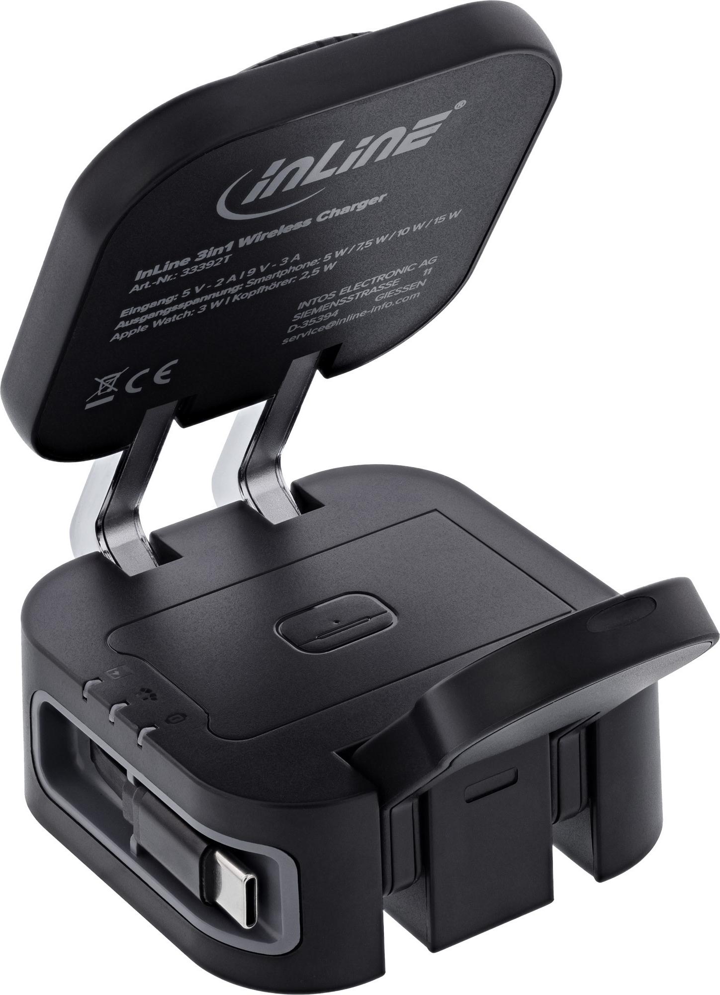 • InLine 3in1 Wireless Charger 15W Qi MagSafe kompatibel 0.8m Kabel (33392T)