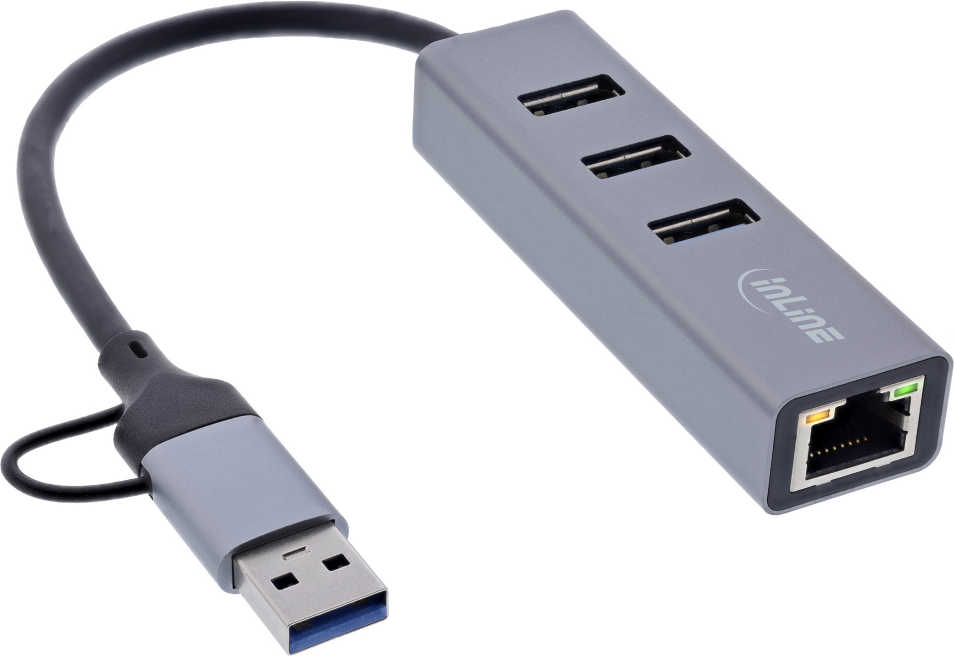 InLine 4in1 Gigabit Hub USB-C & USB-A 1x RJ45 3x USB 3.2 Gen.1 (33380S)