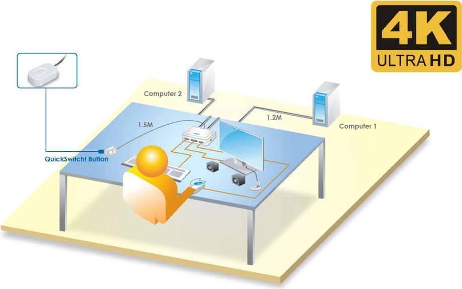 Der InLine 63614I Kabel KVM-Switch ermöglicht die Steuerung von zwei Computern mit USB Typ-C-Schnittstelle von einer Konsole mit DisplayPort Monitor, USB-Maus und -Tastatur und Audio, inklusive 2 Sätzen fester KVM-Kabel (2x USB Typ-C/Audio/Mic Kombi-Kabel). Der Konsolenanschluss bietet sofortige Schaltfunktionen, er verfügt über einen kabelgebundenen Quick-Switch Button - nur ein einfaches Drücken des Buttons und er schaltet um auf den anderen Computer.