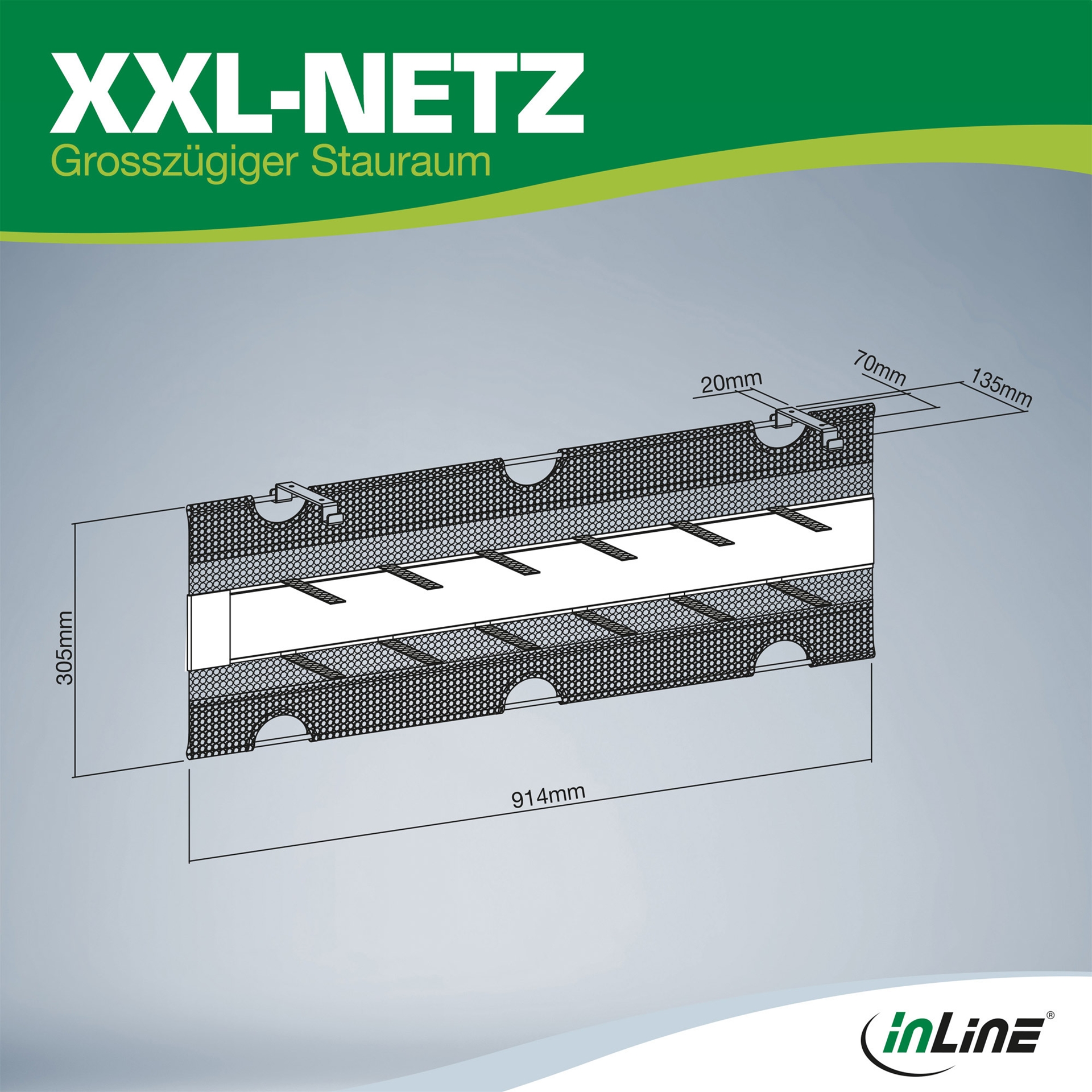 InLine Ablagenetz mit Klettlaschen, für Untertisch-Montage, schwarz. Produkttyp: Halterung für Stromverlängerung, Produktfarbe: Schwarz, Maximum Geräteweite: 30 cm. Menge pro Packung: 1 Stück(e) (23199E)