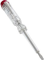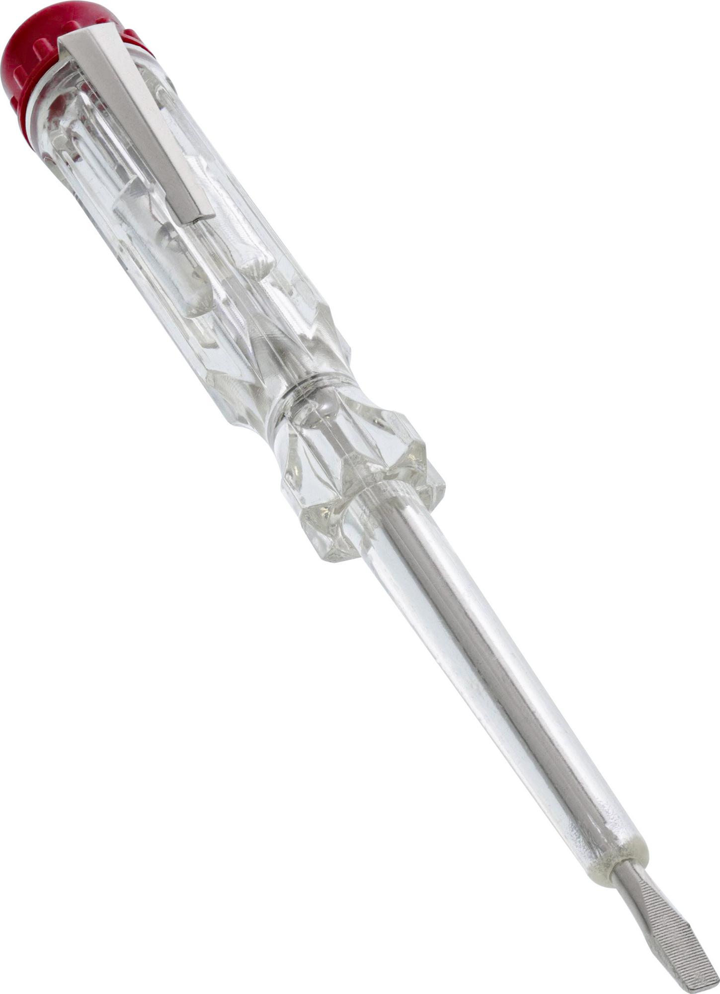 Der Spannungsprüfer eignet sich zur Ermittlung von Wechselspannungen von 200-250Volt. Die Anzeige erfolgt durch eine kleine Glimmlampe im Griff.Schaftlänge ca. 60mm.isolierter Schaft.Taschenclip.3,0 X 60 mm.