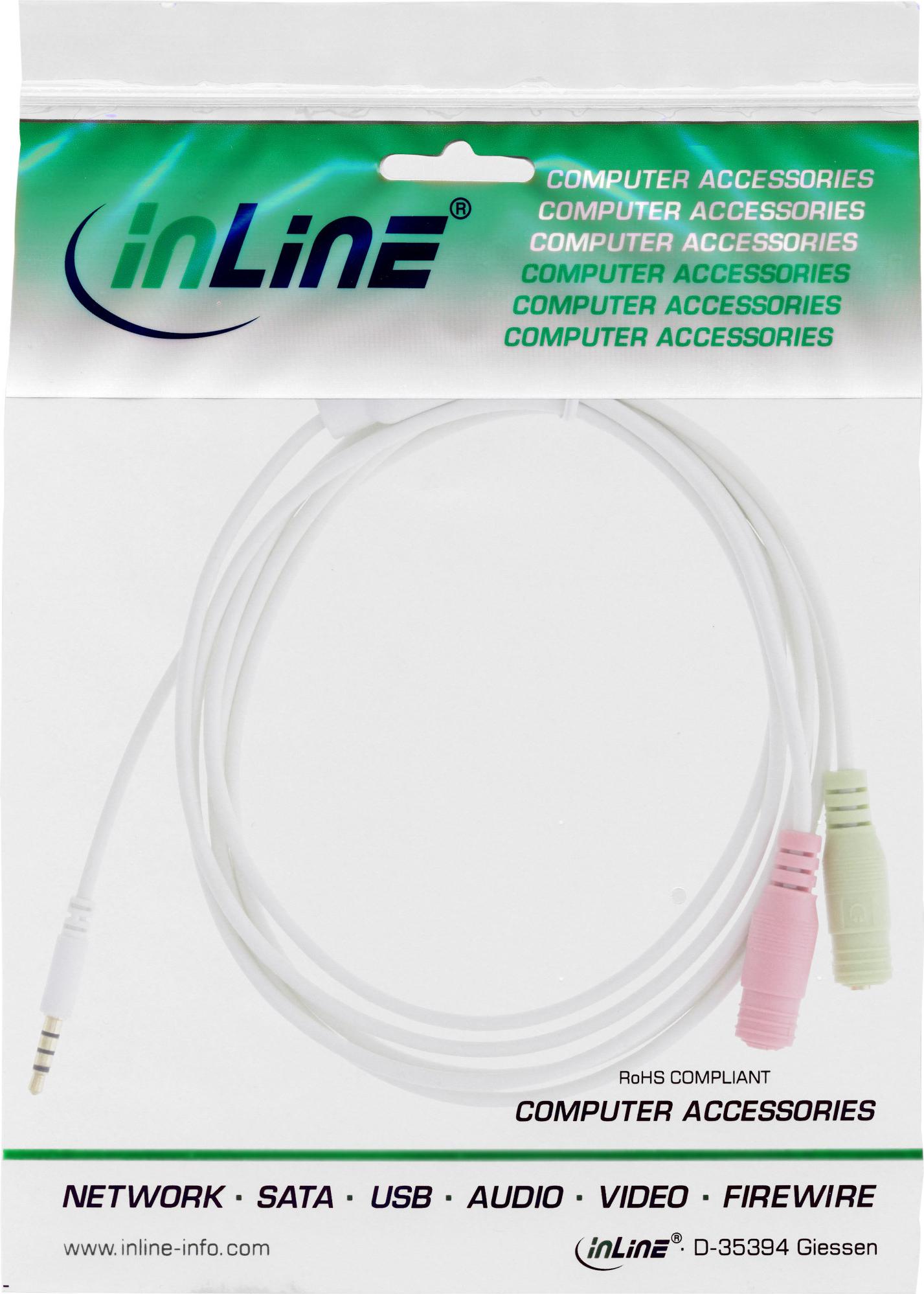 InLine® Audio Headset Adapterkabel, 3,5mm Klinke Stecker 4pol. an 2x 3,5mm Klinke Buchse, weiß, 1m (99301W)