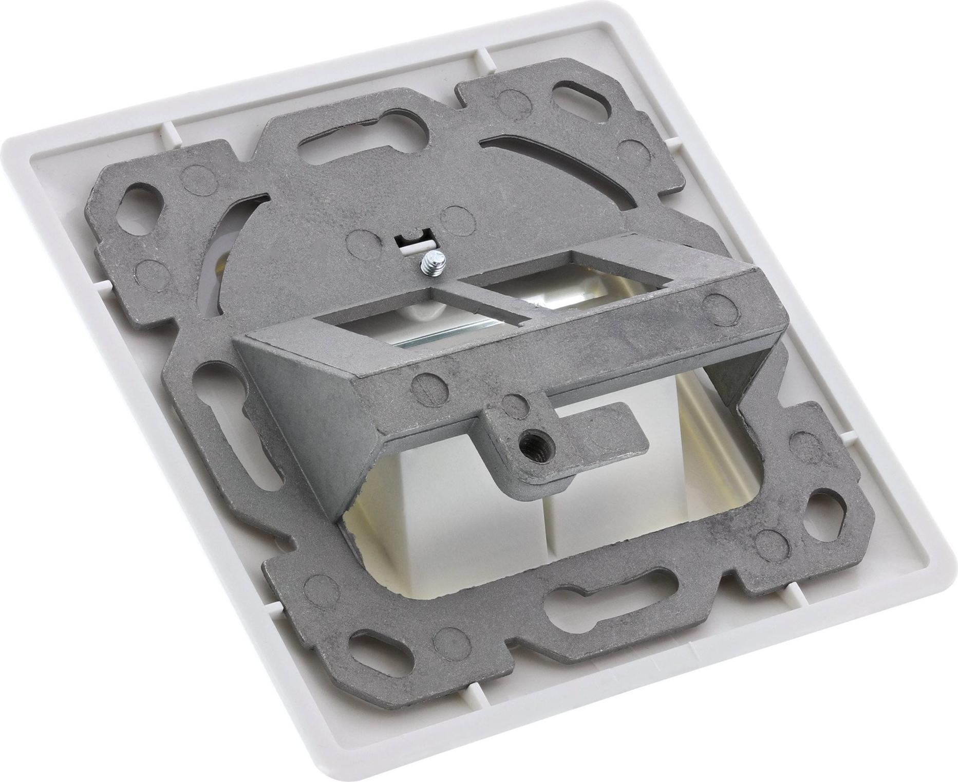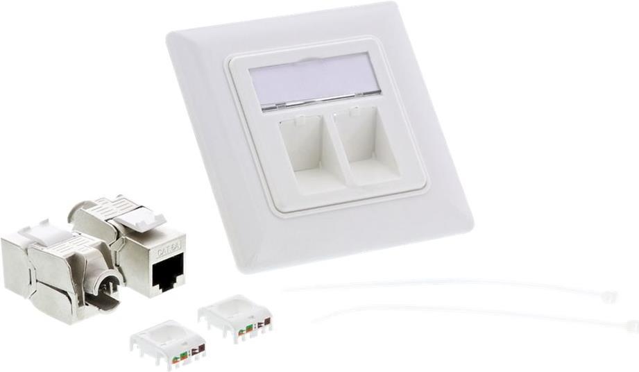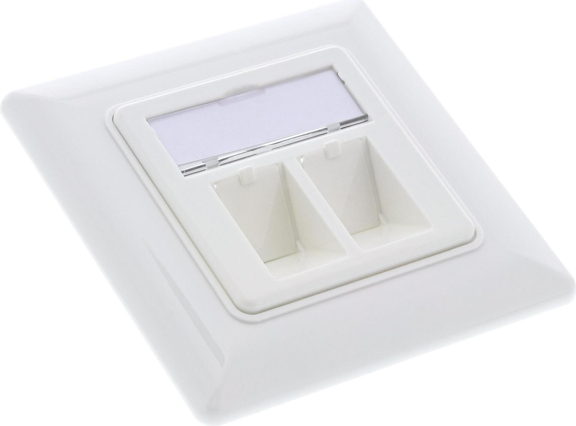 InLine® Cat.6A Anschlussdose, Unterputz, 2x Keystone RJ45 Buchse, weiß RAL9010• Modular aufgebaute Cat.6a Unterputzdose, bestehens aus 2 Cat.6A Modulen (Snap-In, Keystone) und einer 80mm Frontblende in RAL9010