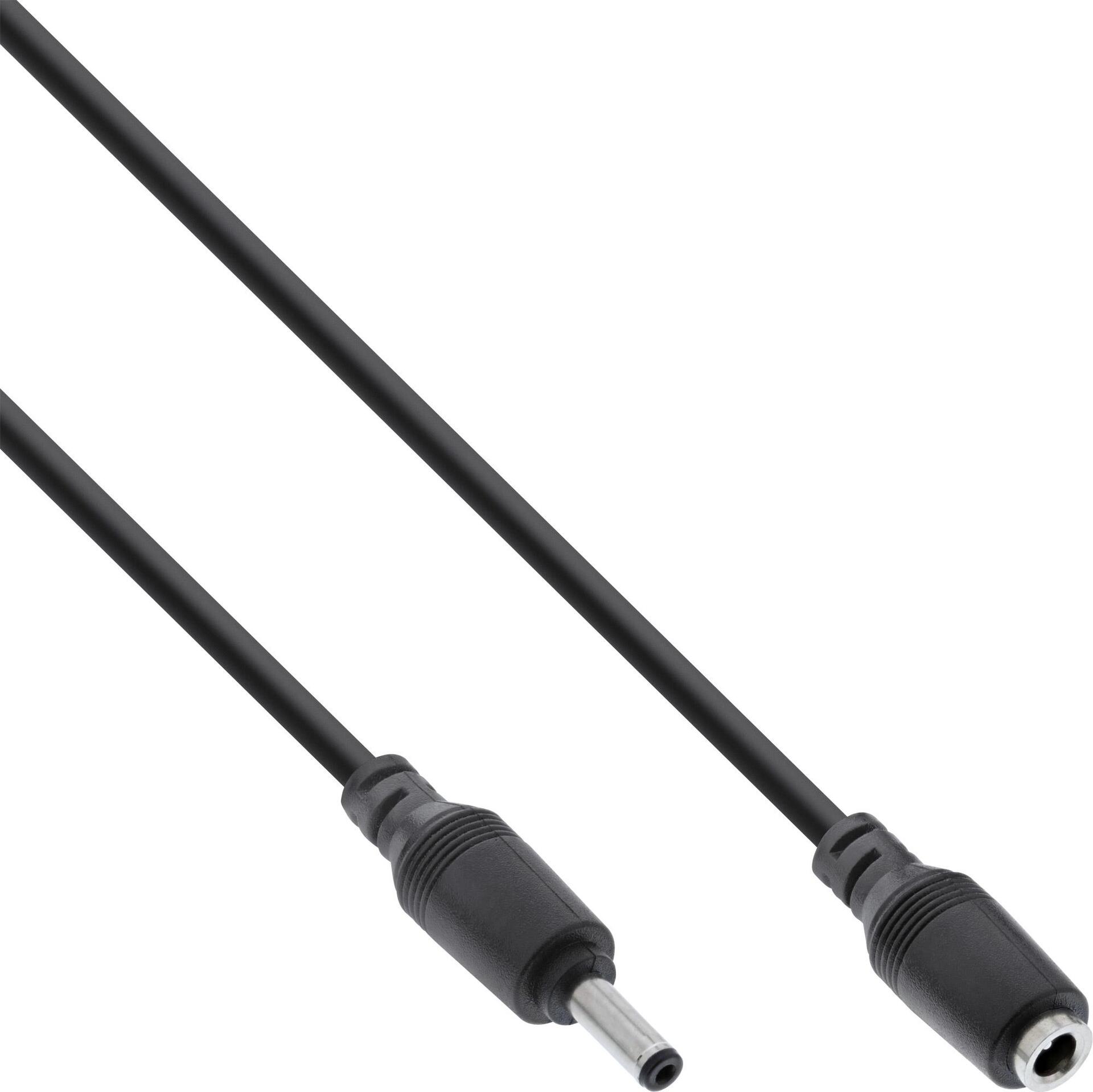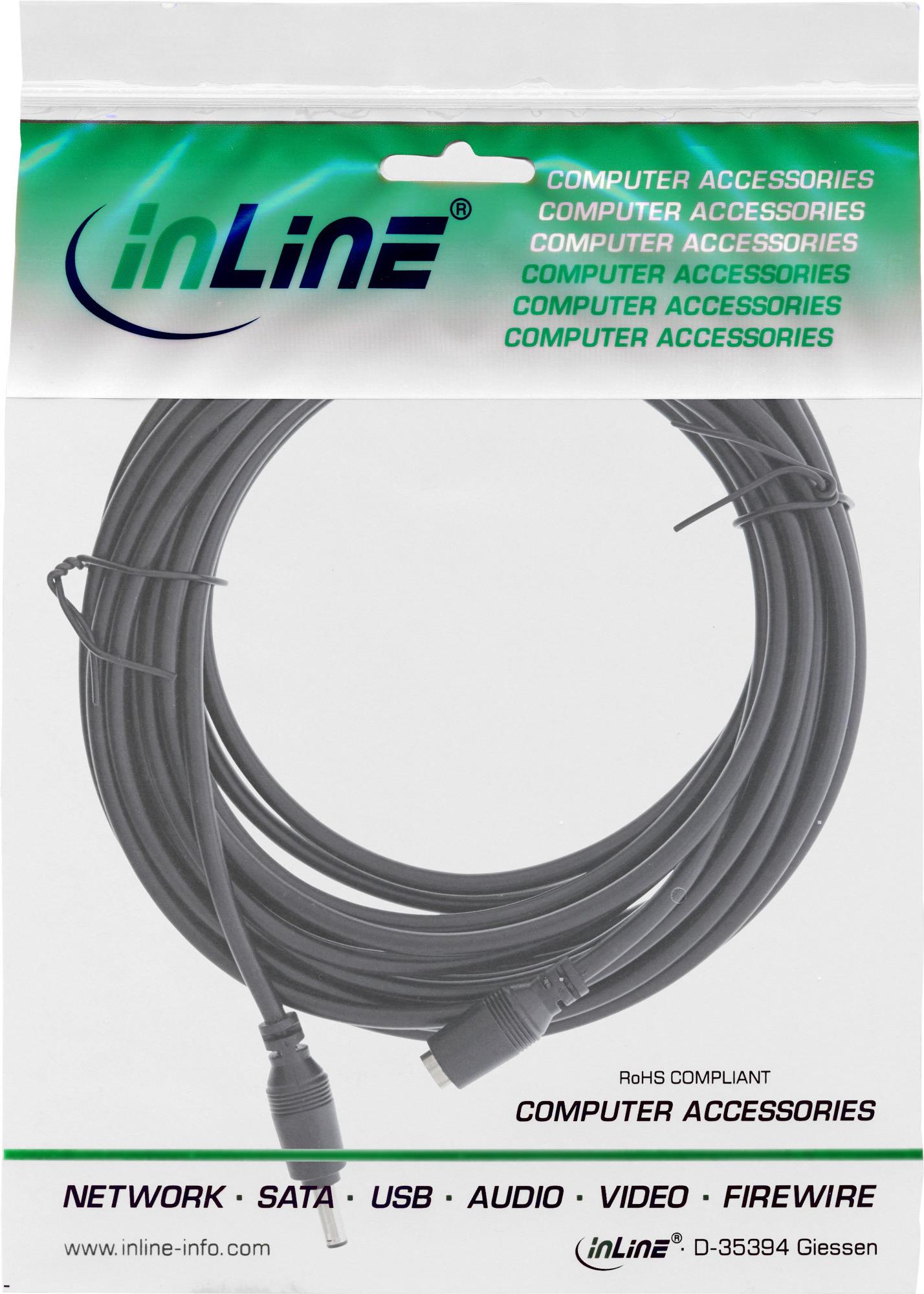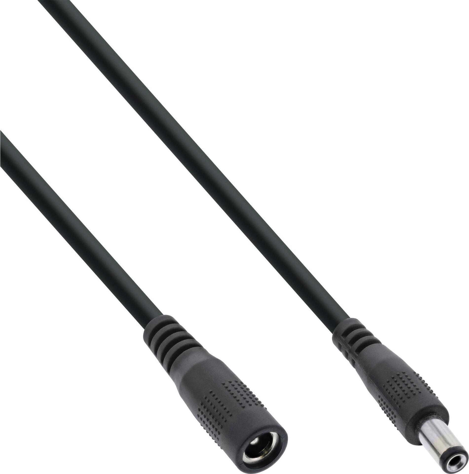 InLine® DC Stecker Verlängerungskabel, schwarz• Innenleiter: Kupfer AWG 24• DC Stecker/Buchse: 5,5x2,1mm• max. 12V/2A (24W)