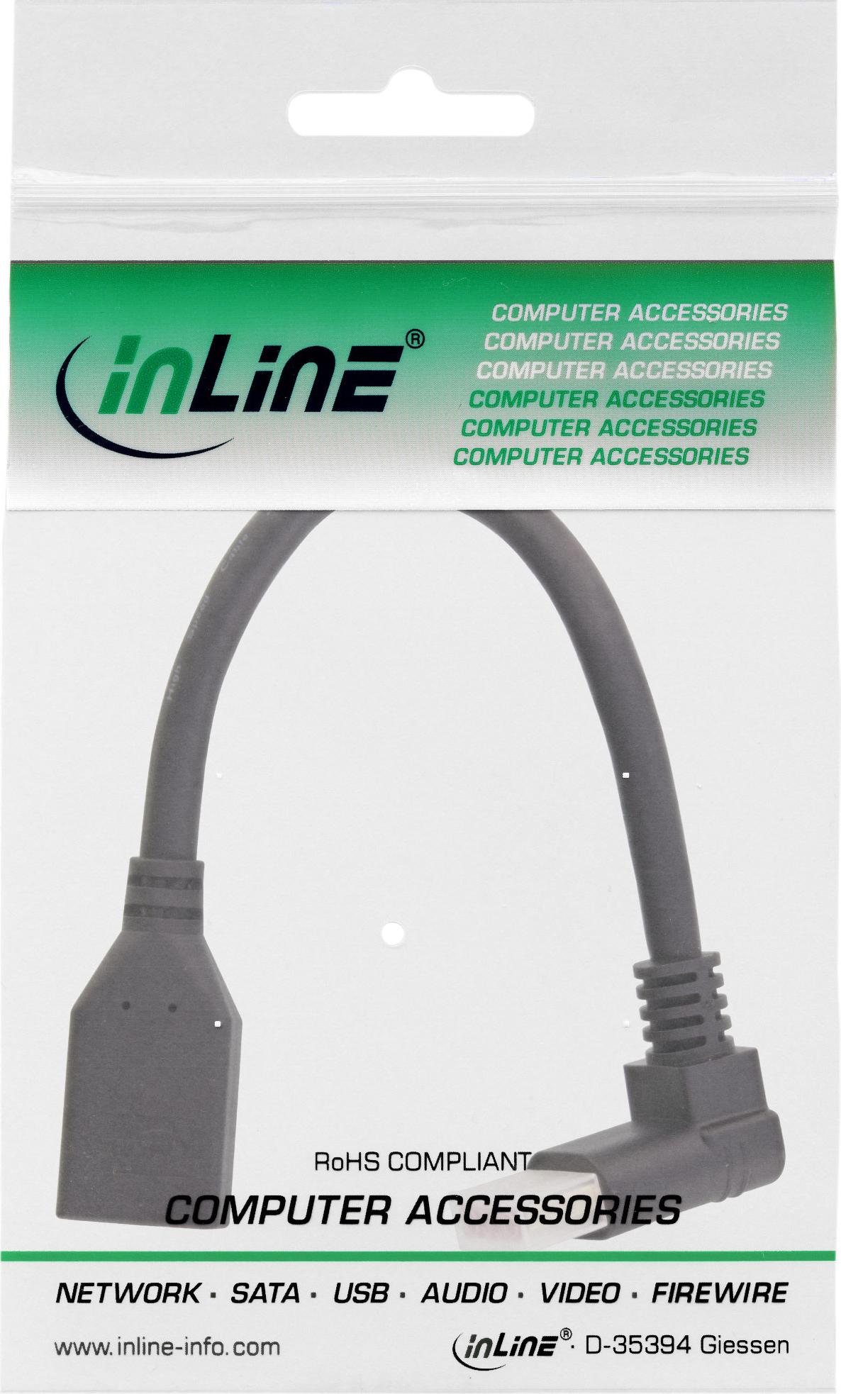 INLINE - DisplayPort-Adapter - DisplayPort (W) gerade bis DisplayPort (M) nach oben gewinkelt - DisplayPort 1.4 - 15 cm - unterstützt 8K UHD (7680 x 4320) - Schwarz