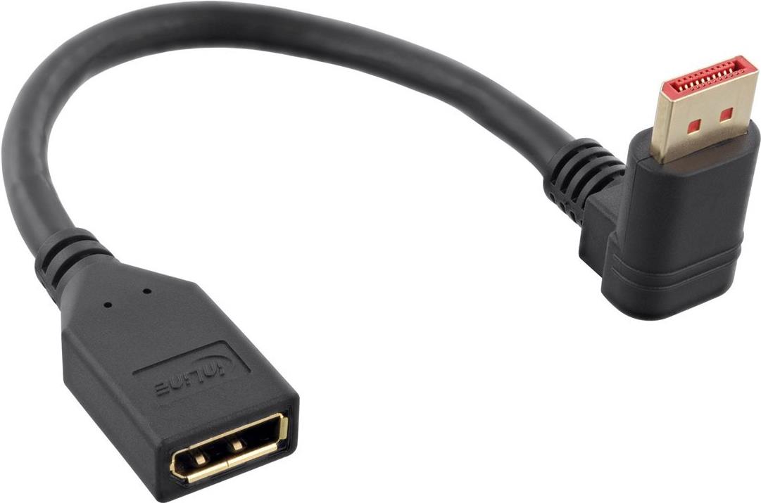 INLINE - DisplayPort-Adapter - DisplayPort (W) gerade bis DisplayPort (M) nach unten gewinkelt - DisplayPort 1.4 - 15 cm - 8K Unterstützung - Schwarz