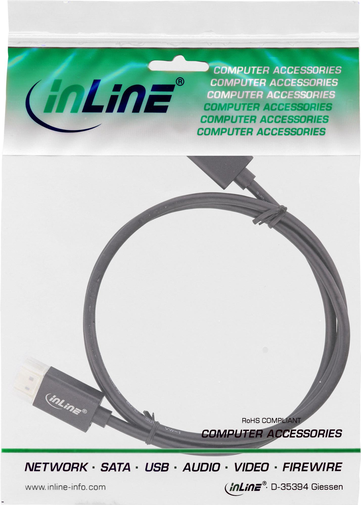 InLine® DisplayPort 1.4 Kabel, 8K4K, schwarz, vergoldete Kontakte, 0,5m (17255S)