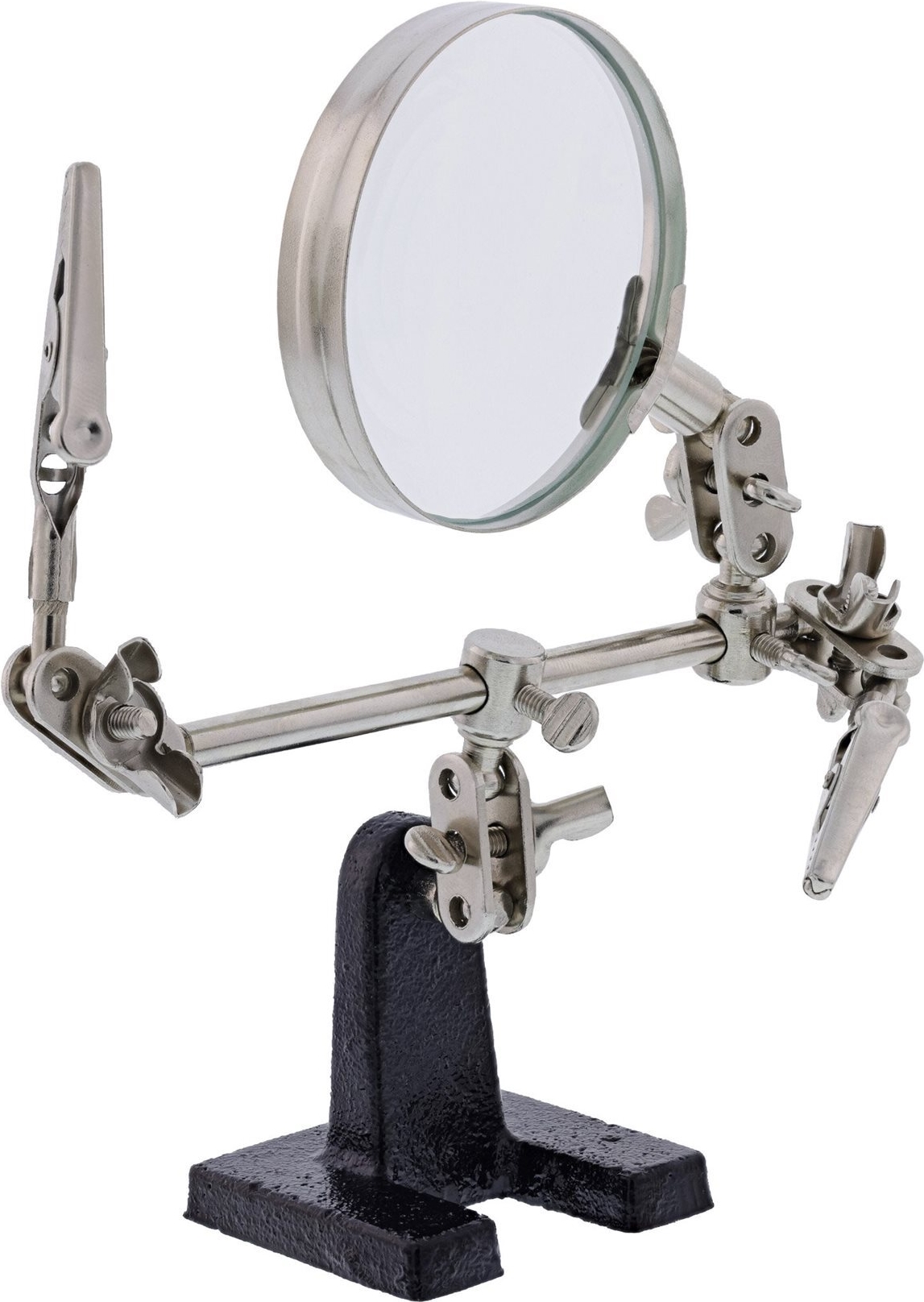 Die dritte Hand mit zei Krokodilklemmen und 65mm Lupe ist das ideale Werkzeug für Hobbyisten, die bei ihren kreativen Projekten mehr Präzision und Kontrolle benötigen. Egal ob beim Modellbau, bei der Schmuckherstellung oder bei kleineren Reparaturarbeiten – diese handliche Haltehilfe macht das Arbeiten an filigranen Details einfach und komfortabel.• 65mm Lupe: Die integrierte Lupe mit einer 2,5-fachen Vergrößerung hilft Ihnen, kleine Details genau im Blick zu behalten. Perfekt für Arbeiten, bei denen Genauigkeit entscheidend ist.