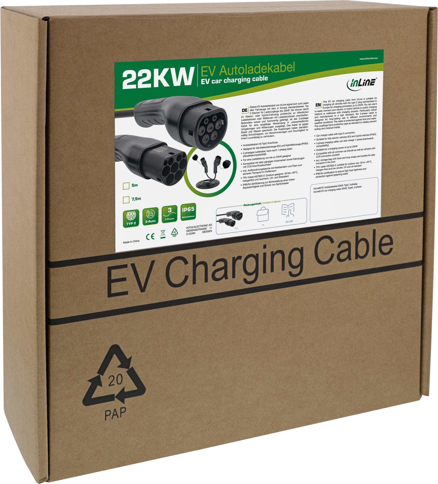 InLine® EV Autoladekabel 22kW Typ2, 3-phasig, 7,5m (16287I)
