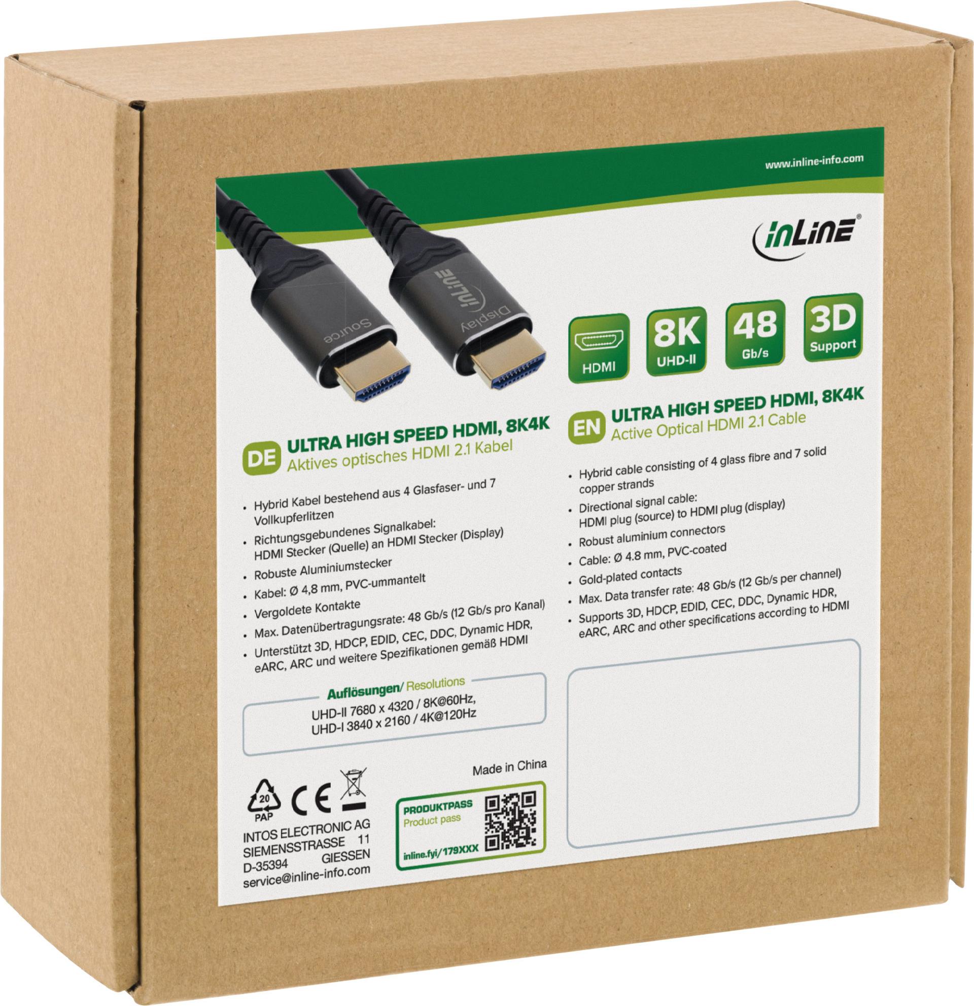 InLine HDMI AOC Kabel - Ultra High Speed HDMI Kabel - 8K - Aluminium - 50m (17950X)