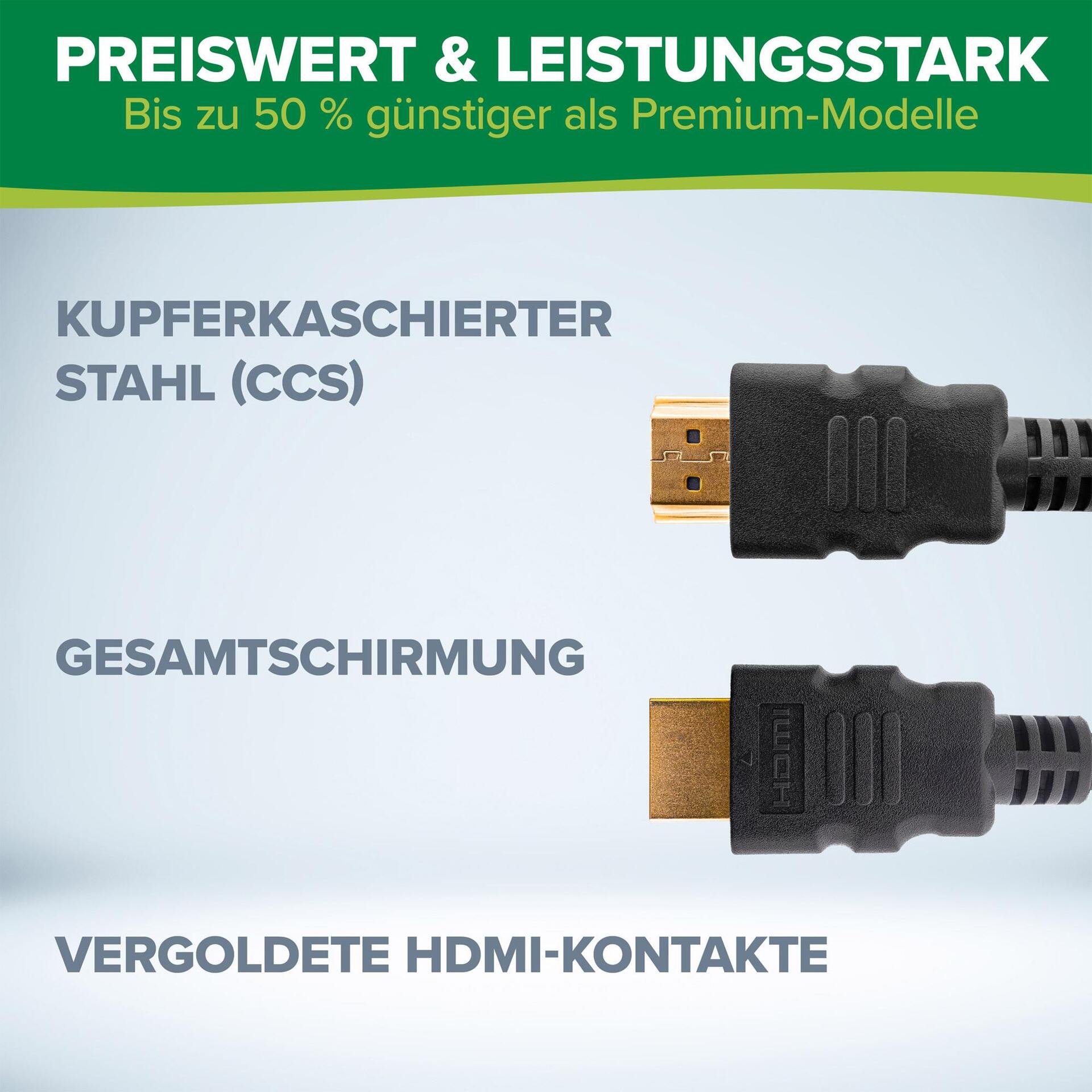 Durch den Einsatz von kupferkaschiertem Stahl (CCS) anstelle von Vollkupfer ergibt sich eine signifikante Preisersparnis von ca. 50 % im Vergleich zur Premium-Serie. Während HDMI 2.0 bis zu einer Länge von 5m voll unterstützt wird, ist ab 7,5m eine maximale Auflösung von 4K@30Hz gewährleistet.Dank des Mehrlitzen-Aufbaus bleibt das Kabel flexibel und widerstandsfähig gegenüber mechanischer Beanspruchung. Dank einer Gesamtschirmung, vergoldeter HDMI-Kontakte und einem Twisted-Pair-Aufbau erleben Sie eine zuverlässige Signalübertragung und optimale Abschirmung. Mit einem PVC-Mantel und stabilen Steckerkontakten ist das HDMI-Kabel langlebig und zuverlässig.Diese Kabel sind ideal für Systemhäuser und Wiederverkäufer, die ihren Kunden eine kostengünstige und dennoch leistungsstarke Lösung z. B. für die Ausstattung von Arbeitsplätzen anbieten möchten.HDMI 2.0b: