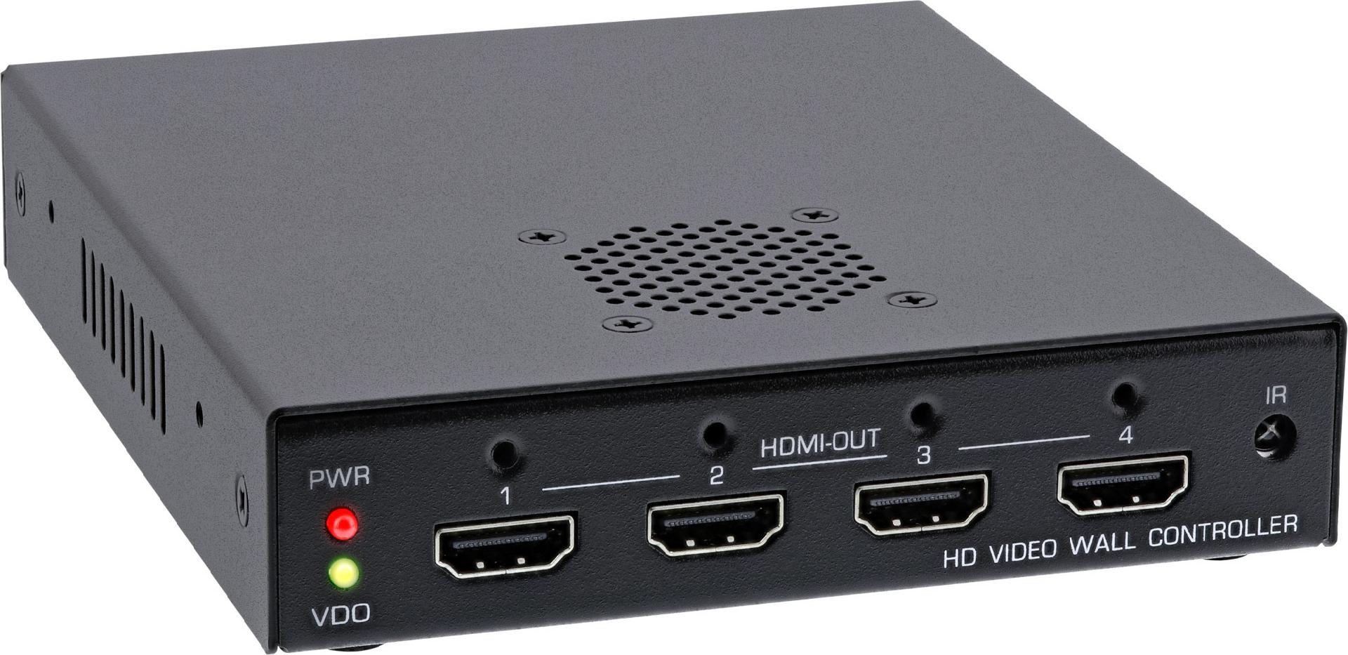 Dieses eigenständige Videowand-Steuergerät wurde für den Einsatz von hochwertigen Mehrfachdisplays entwickelt und kann eine Videoquelle duplizieren oder vergrößern und auf bis zu 4 Monitore verteilen. Mit dem InLine® HDMI Videowand Verteiler können Sie 4 Monitore mit einer max. Bildschirmauflösung von je 1.920x1.200 zu einer großen Videowand (2x2 Monitore) zusammenfassen. Für das Eingangssignal stehen Ihnen eine HDMI- oder VGA-Schnittstelle zur Verfügung. Gesteuert wird der InLine® HDMI Videowand Verteiler denkbar einfach über eine IR-Fernbedienung. Die erweiterte Rahmenkompensation erlaubt es, das Bild optimal an die Videowand anzupassen. Der InLine® HDMI Videowand Verteiler ist die ideale Lösung für alle professionellen Videoanwendungen wie digitale Beschilderung, Werbung, A/V-Splitting oder Broadcasting.• Erstellen Sie eine 2x2, 1x4 oder 4x1 Videowand mit vier HDTV-Displays aus einer HDMI oder VGA Quelle