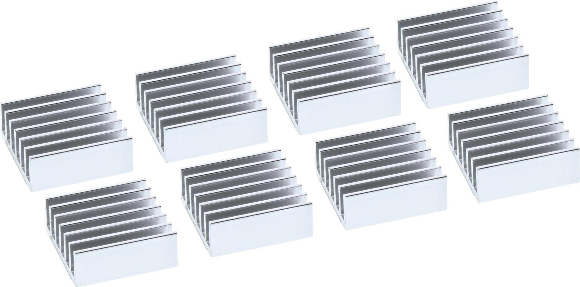 Passivkühlkörper für kleine IC-Chips etc. Schützen Sie Ihre Bauteile vor Überhitzung! Die einzelnen Kühlkörper sind schon mit selbstklebenden Wärmeleitpads ausgestattet. • Farbe: silber• Abmessungen (LxBxH): 14 x 14 x 6mm• Menge: 8 Stück