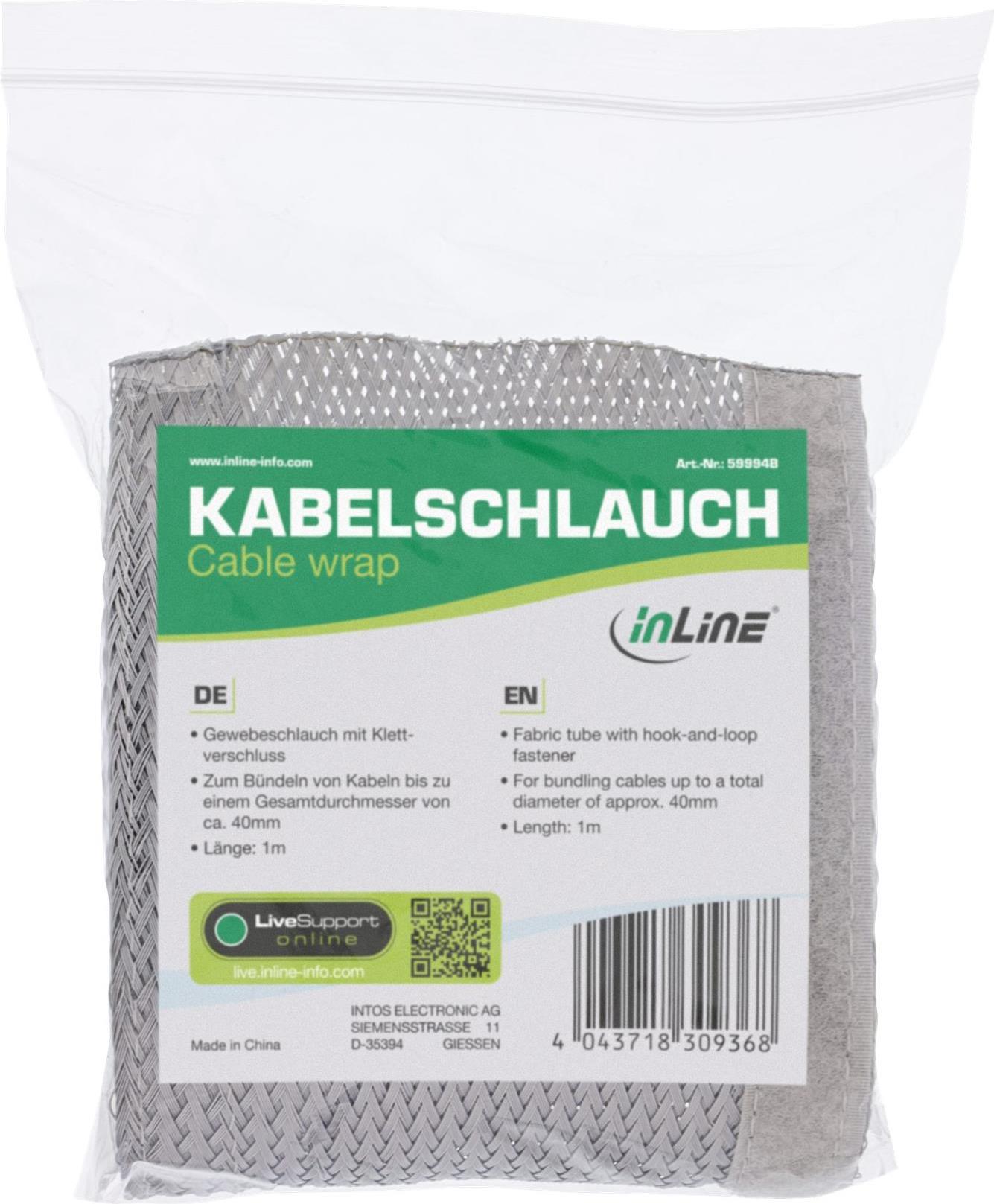InLine Kabelschlauch - Gewebeschlauch mit Klettverschluss - 1m x 40mm grau (59994B)
