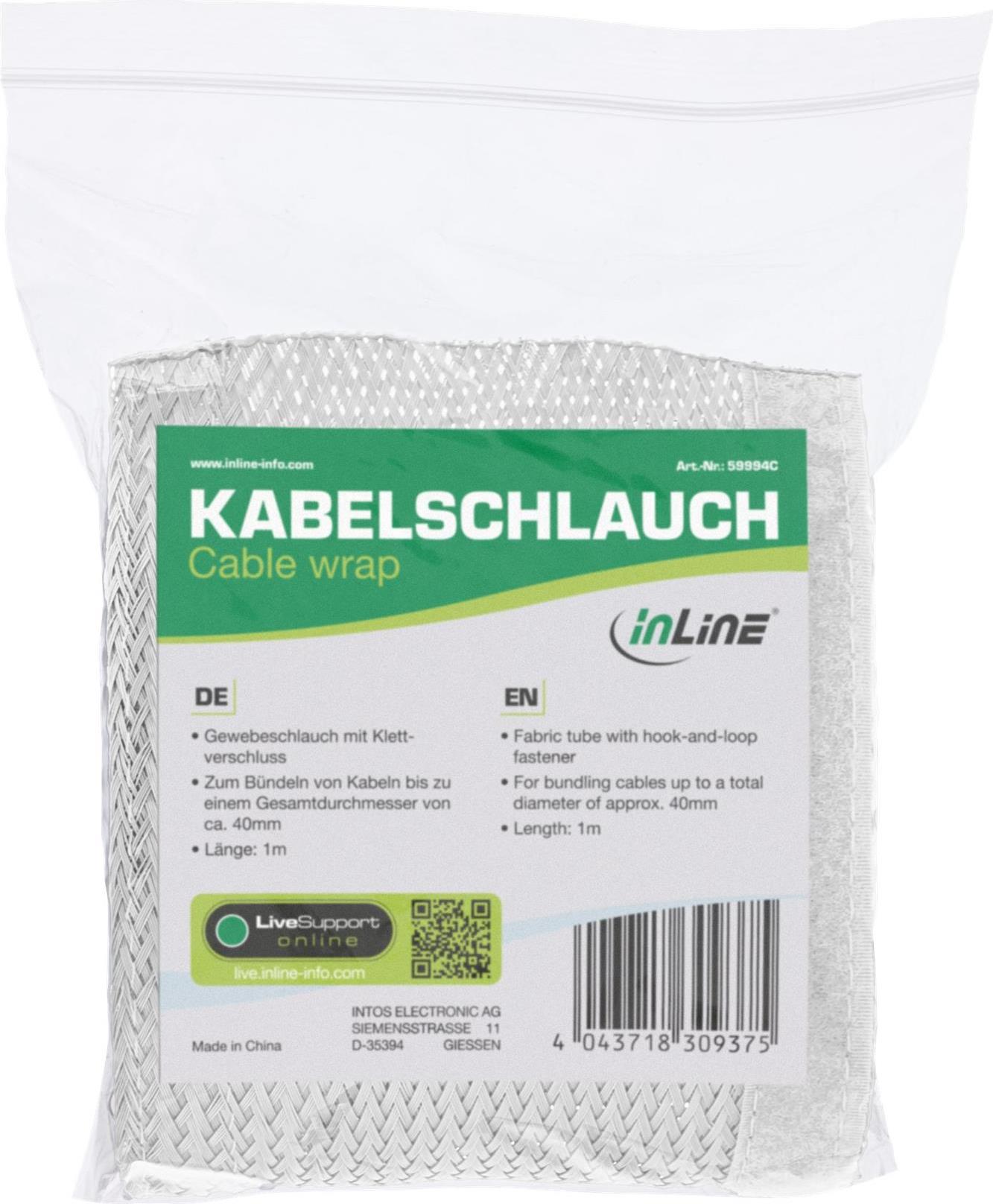 InLine Kabelschlauch - Gewebeschlauch mit Klettverschluss - 1m x 40mm weiß (59994C)