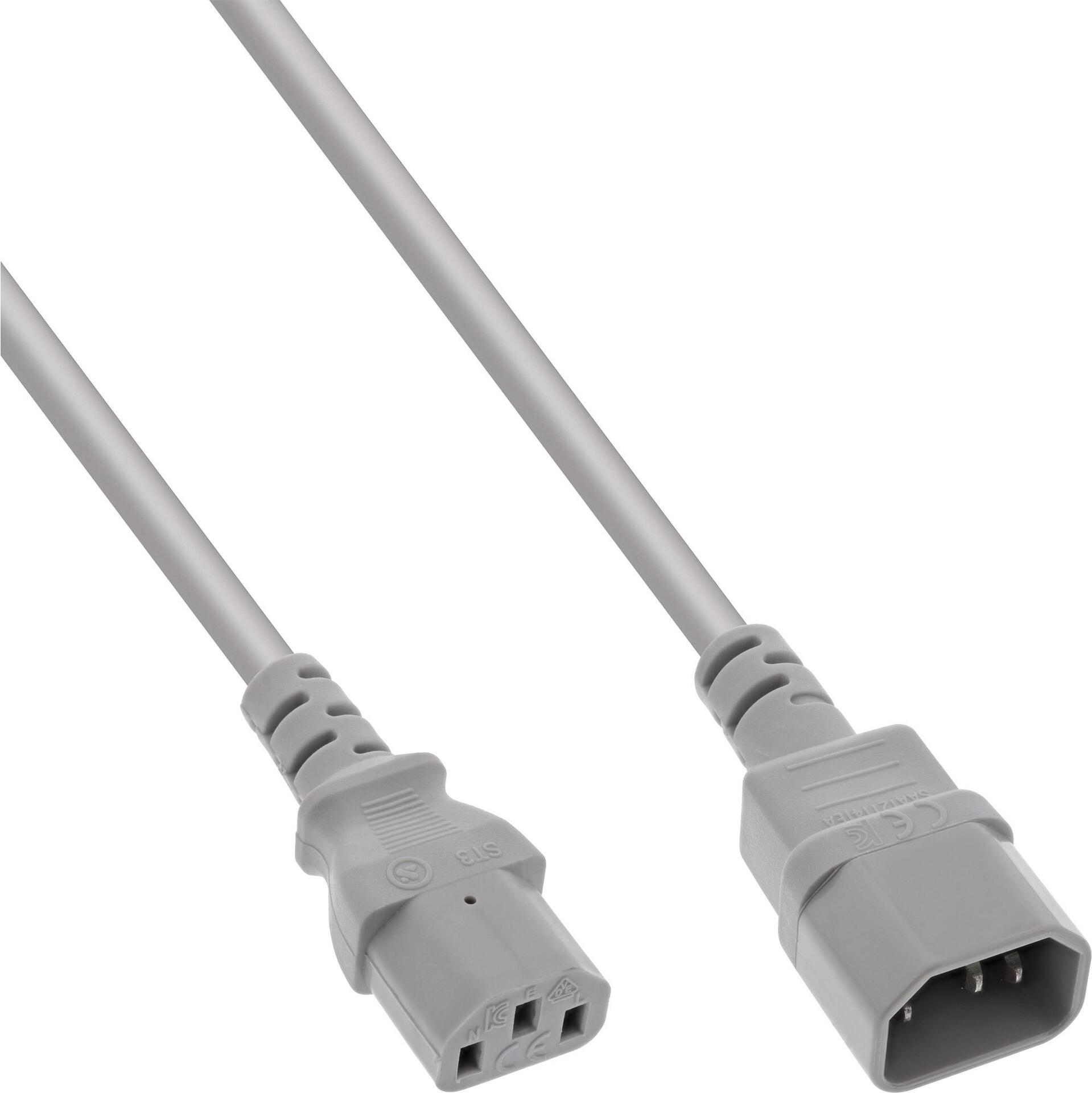 INLINE - Spannungsversorgungs-Verlängerungskabel - IEC 60320 C13 zu IEC 60320 C14 - 250 V - 30 cm - Grau