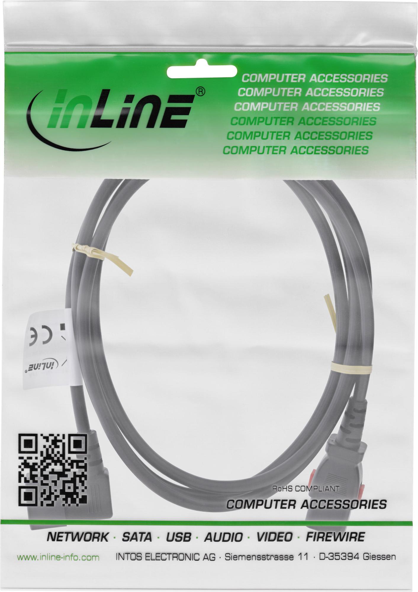• InLine Kaltgeräteverlängerung C13 verriegelbar auf C14 gewinkelt schwarz (16931A)