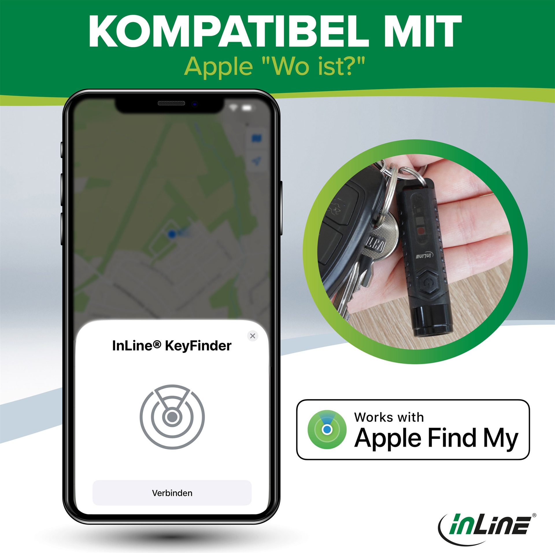 Der InLine KeyFinder kombiniert intelligente Ortungstechnologie mit einer leistungsstarken LED-Taschenlampe und einem praktischen Blinklicht-Modus. Dank der Apple "Wo ist?"-Integration können verlorene Schlüssel, Werkzeugtaschen, Fahrzeuge oder andere wertvolle Gegenstände schnell und zuverlässig lokalisiert werden. Das robuste Design mit IP65-Zertifizierung schützt den KeyFinder vor Staub und Wasser, was ihn ideal für den Einsatz in anspruchsvollen Umgebungen macht. Die integrierte LED-Taschenlampe bietet bis zu 300 Lumen und sorgt für eine klare Beleuchtung bei Dunkelheit, während der Blinklicht-Modus zusätzliche Sichtbarkeit im Dunkeln bietet – perfekt für den Einsatz bei Fahrrädern, für Haustiere oder Outdoor-Aktivitäten. Mit einer Betriebszeit von bis zu 6 Stunden und einem schnellen USB-C-Ladevorgang in nur 1,5 Stunden ist der KeyFinder immer einsatzbereit. Das kompakte Design mit nur 15 g Gewicht und einer Länge von 61,6 mm macht ihn besonders praktisch und einfach zu transportieren, sodass er jederzeit griffbereit ist.• Bluetooth-Ortung: Kompatibel mit Apple "Wo ist?"