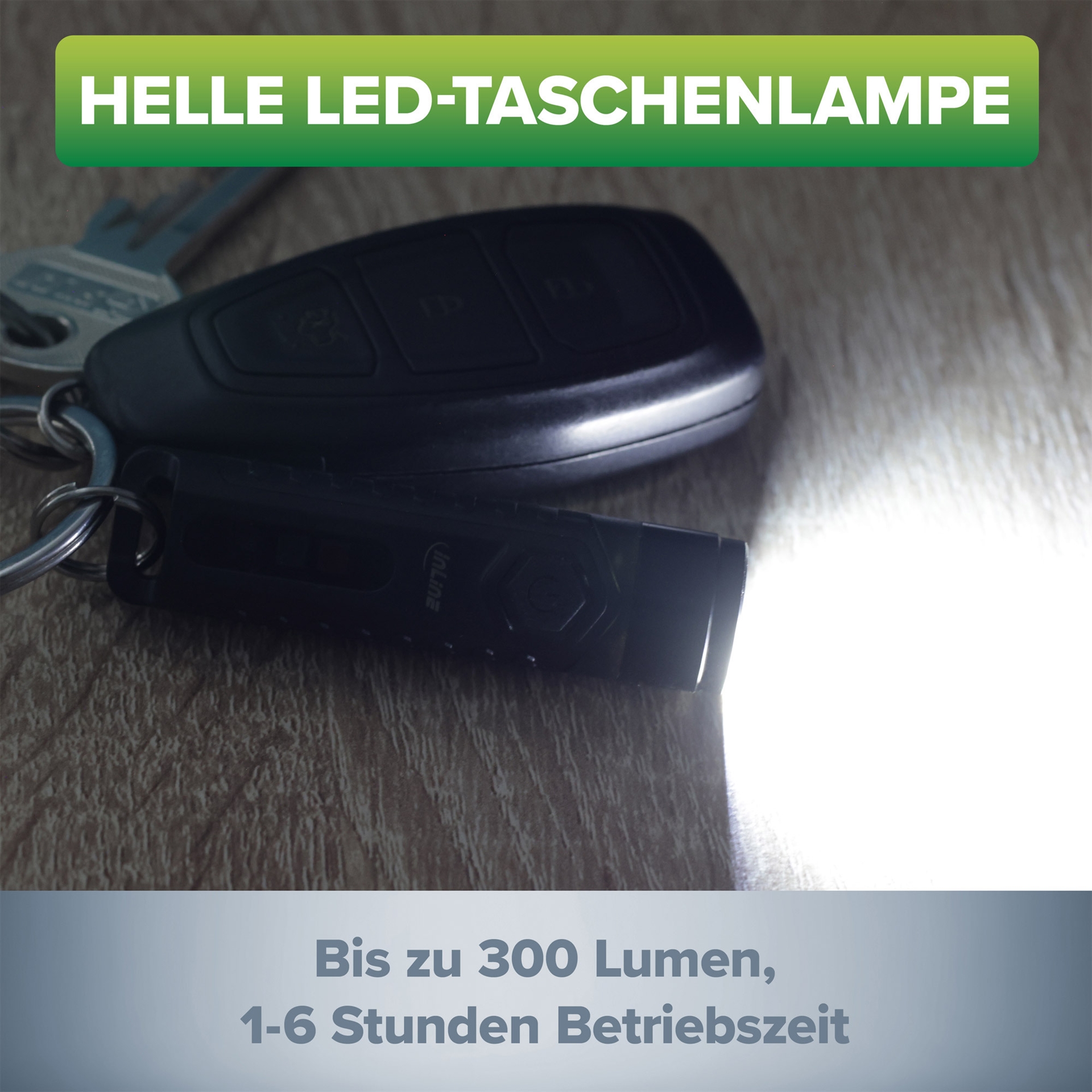• LED-Taschenlampe: Bis zu 300 Lumen, 1-6 Stunden Betriebszeit