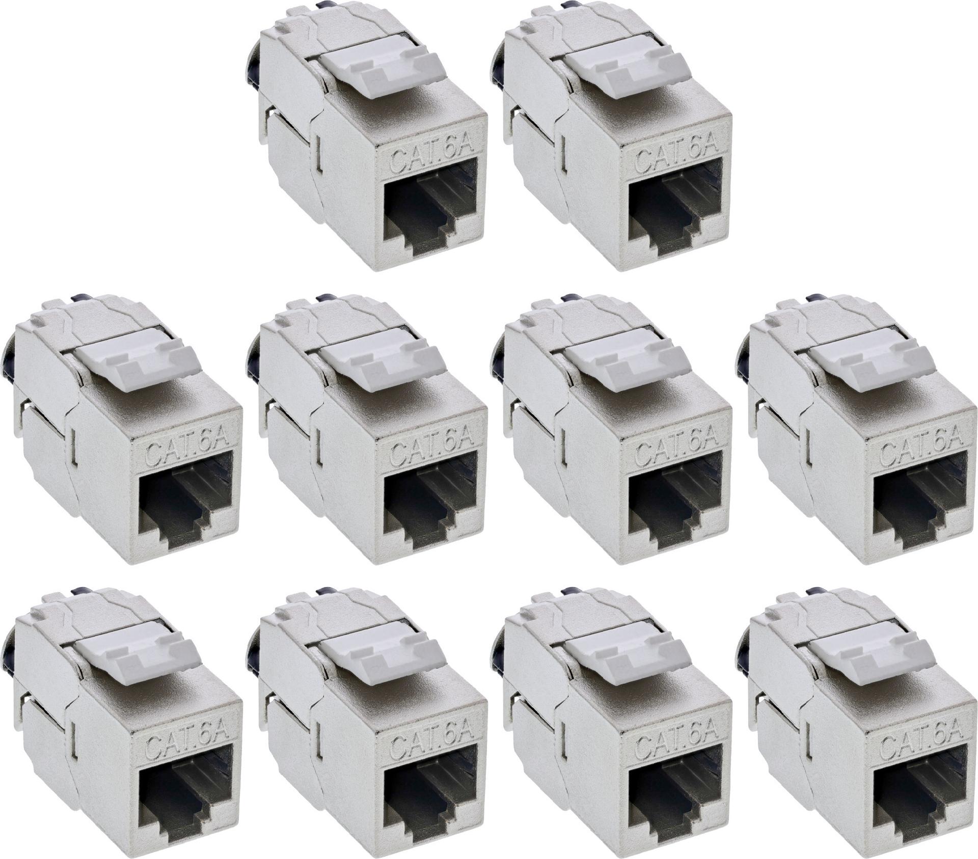 InLine® Keystone RJ45 Buchse Slim SNAP-In Cat.6A, integr. Kabelbinder, 10er Pack (76202V)