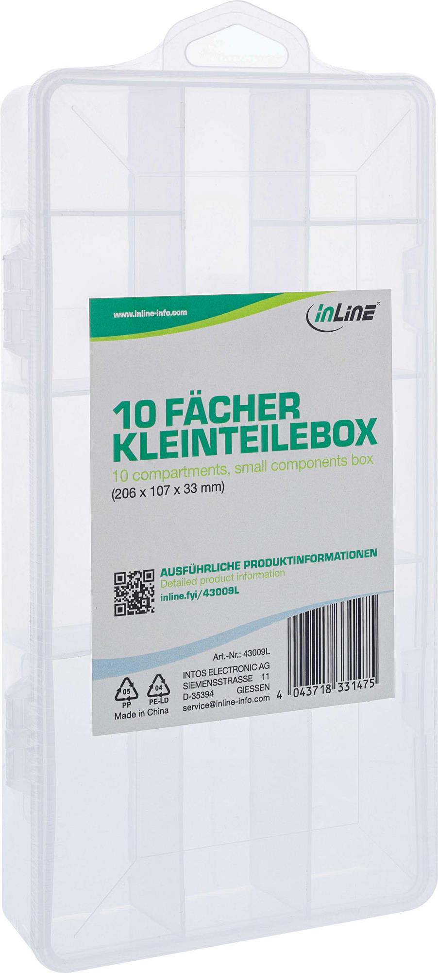 Die InLine® Kleinteilebox ist die ideale Lösung für professionelle Anwender, die auf eine strukturierte und sichere Aufbewahrung von Kleinteilen angewiesen sind. Mit 10 Fächern bietet sie ausreichend Platz für Schrauben, Muttern, Dichtungen oder andere Kleinteile, die im Arbeitsalltag oft griffbereit sein müssen. Der Klipp-Deckel sorgt dafür, dass der Inhalt jederzeit sicher verstaut bleibt. Dank der kompakten Bauweise passt die Box problemlos in Werkstattregale, Werkzeugkoffer oder Schubladen und unterstützt eine effiziente Arbeitsweise. Die transparente Optik ermöglicht eine schnelle Sichtkontrolle des Inhalts, ohne die Box zu öffnen.Technische Spezifikationen:• Fächeranzahl: 10
