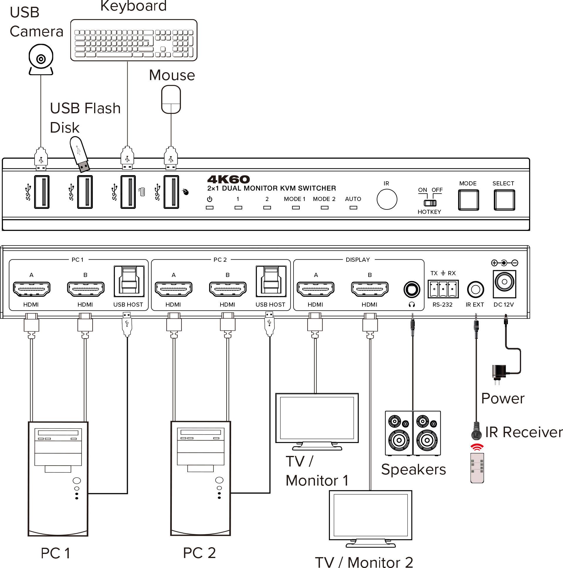 InLine KVM Switch - 2-fach - HDMI - 4K60Hz - Dual Monitor (57885F)