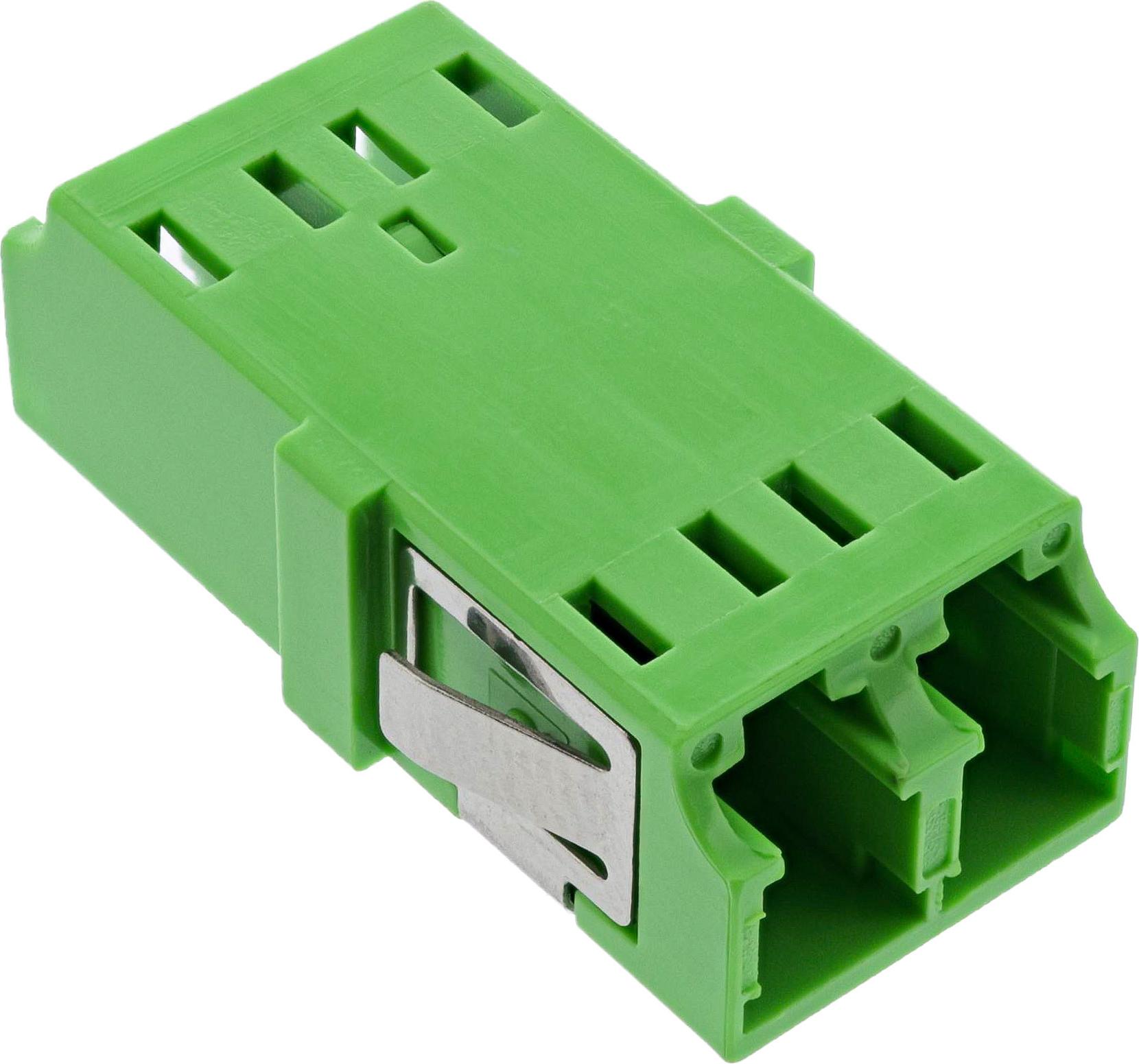 Die InLine® LWL Duplex LC/LC-Kupplung in Singlemode-Ausführung verbindet zwei Lichtwellenleiter zuverlässig und präzise. Dank ihrer robusten Konstruktion mit Keramik-Hülse eignet sie sich hervorragend für den Einsatz in anspruchsvollen Netzwerkumgebungen wie Rechenzentren oder Backbone-Strukturen in Bürogebäuden und Telekommunikationsanlagen.Die grüne Farbgebung kennzeichnet die Singlemode-Kompatibilität und unterstützt bei der visuellen Unterscheidung innerhalb größerer Netzwerksysteme. Das Gehäuse ist gemäß UL 94V0 schwer entflammbar und die stabile Metallhalterung stellt einen festen Sitz in SC-Simplex-Ausschnitten sicher. Zusätzlich ist eine interne Laserschutzblende integriert, die ungewollte Lichtaustritte zuverlässig verhindert – ein wichtiger Sicherheitsfaktor für den professionellen Einsatz.Zusätzliche technische Spezifikationen:• Typ: Duplex LC/LC-Kupplung